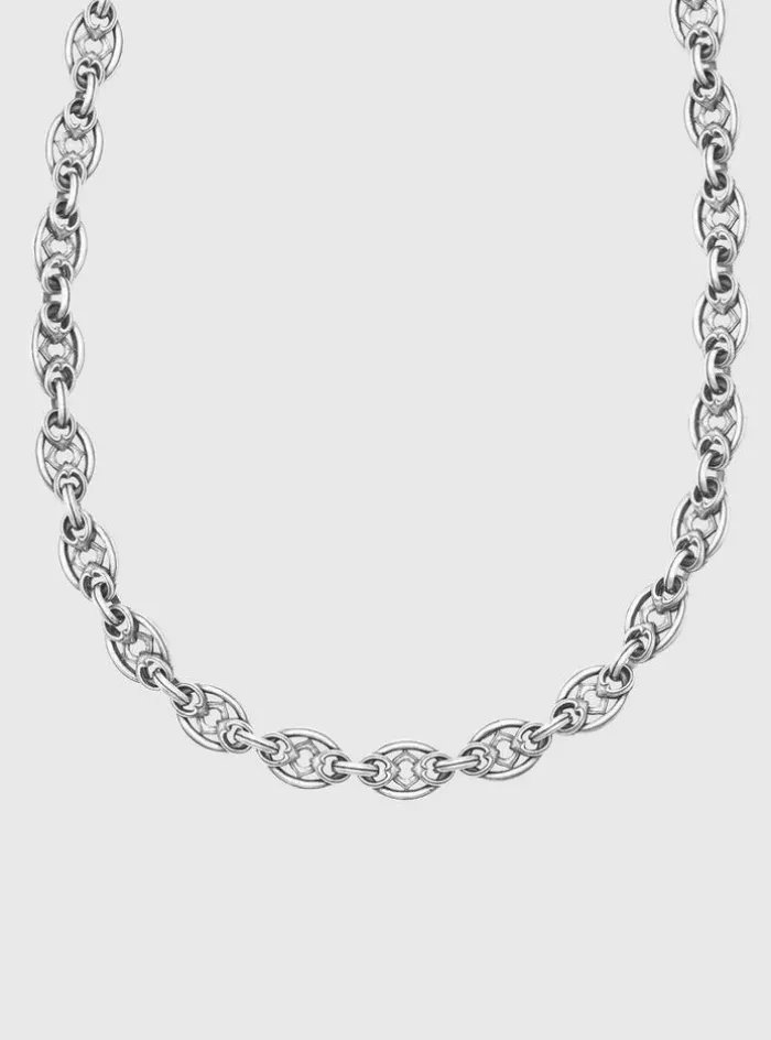 An emblem of dark excellence – this necklace features a series of interconnected oval links that delivers an antiqued aesthetic. At 24-inches, this necklace serves as a captivating focal point, perfect as a statement piece to enhance any ensemble. Pair it with the matching Link Bracelet for a complete look. Sterling SilverLobster Clasp All-Around Links Length: 24 in. Width: 10.0 mm Handcrafted in Istanbul