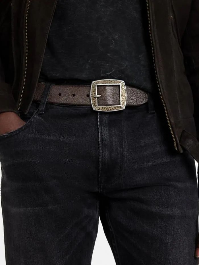This 34mm Mercer Filigree Belt is constructed from soft veg-tanned calf leather, complemented by a full-grain calf lining for unparalleled comfort and durability. The centerpiece is a hand-casted pewter buckle, adorned with signature filigree brass inserts that create a stunning contrast of gold and silver tones. Crafted with precision in Italy and finished with a buckle from England, this belt is a testament to artisanal skill.100% Cow LeatherLining: Full Grain Calf LeatherProfessional Dry CleanBy Leather Expert34mmHand-Casted Pewter BuckleFiligree Brass InsertsBuckle Crafted in EnglandBelt Made in Italy