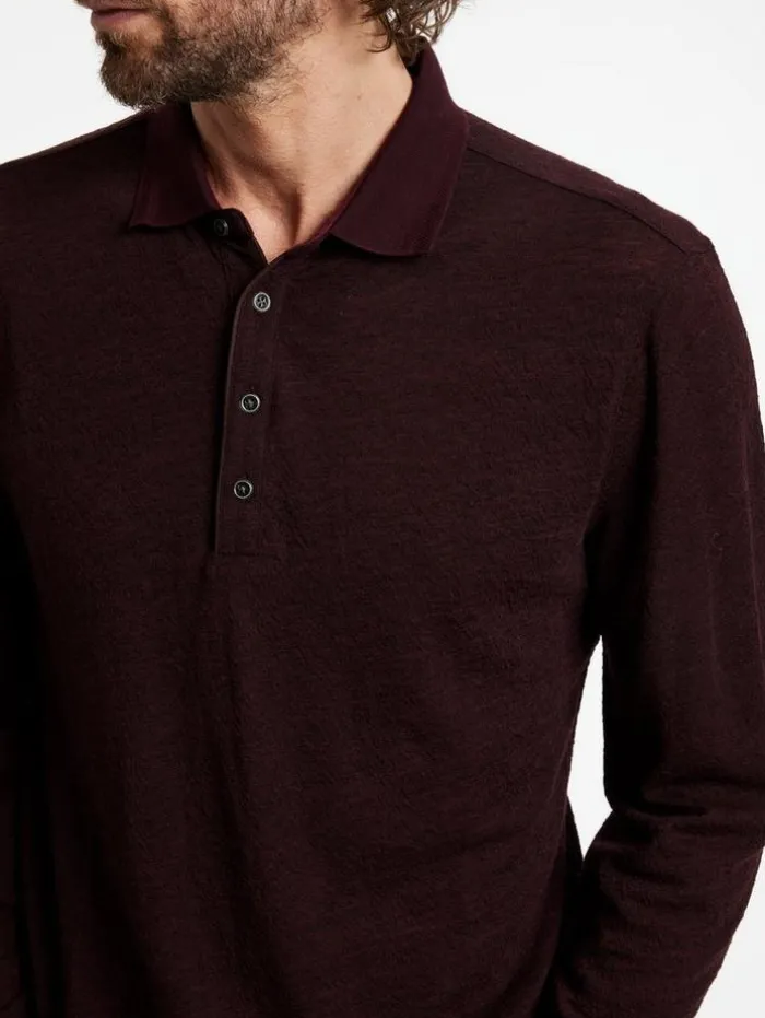 Seasonal polos are the perfect addition to your capsule wardrobe. The Presidio has a classic easy fit with long sleeves. The buckle texture fabric is elevated with racking stitch details and piping on the button placket – it’s a refined take on the basics. 100% Merino WoolDry Clean OnlyPulloverCollarLong SleeveEasy FitBucle TextureMeasurements: Front Body Length: 27.5″, Chest: 20.75″, Across Shoulder: 18.5″, Flat Sleeve Length : 34.75″