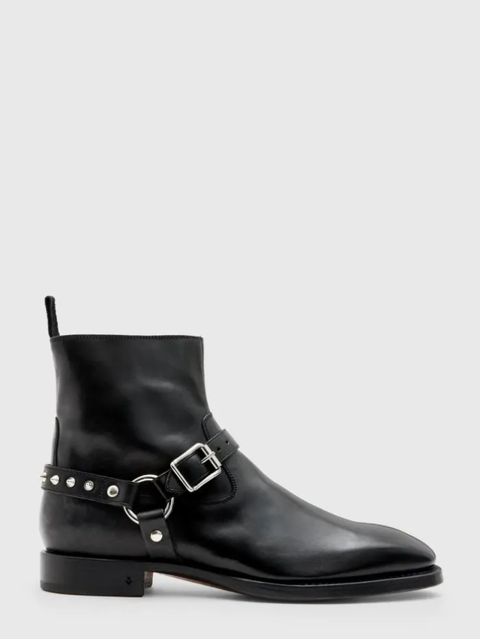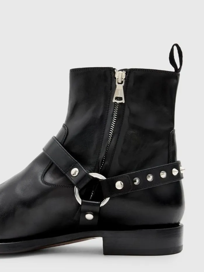 The Regent Harness Boot is an icon of defiance, crafted with the finesse of Italian artisans. Constructed to a chiseled silhouette in veg-tanned calf leather, it’s adorned with details that demand attention—from the bold cone studs punctuating the back harness to the perfectly placed zipper for easy wearing. Every element, down to the hand-stained leather sole, cements its status as a masterwork of modern rebellion. Upper: 100% Cow LeatherLining: 100% Calf LeatherProfessional Care By Leather ExpertMedial Zip ClosureVeg-Tanned MaterialBack HarnessSignature Cone Studded HardwareHand-Stained Leather SoleMade in Italy