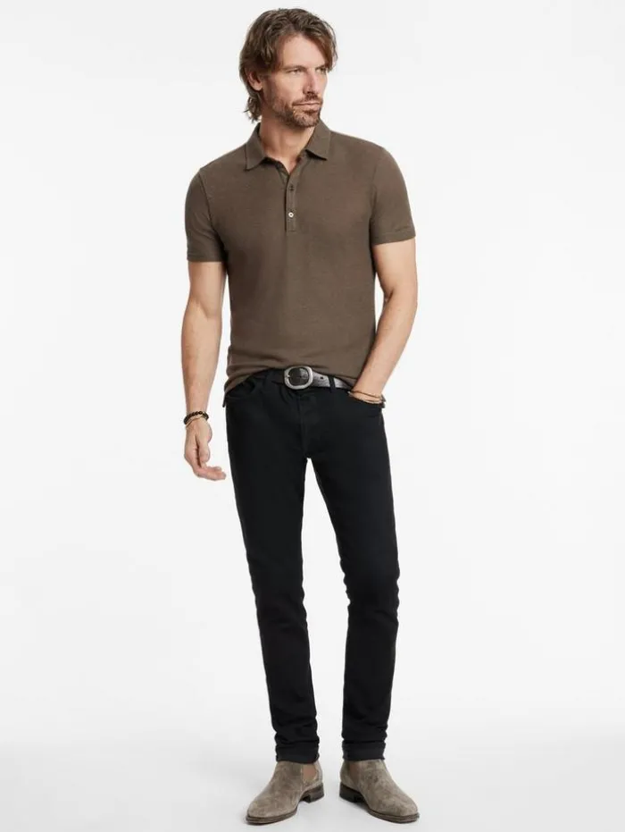 Experience the refined elegance of our Paloma Polo. This polo is distinguished by its meticulous piping edge detail at the button placket, showcasing our attention to detail. Crafted from a broken diamond merino jacquard, it not only offers a unique texture but also ensures a softness finish for unparalleled comfort. Ideal for both casual and sophisticated attire, the Paloma Polo combines luxury with wearability, making it an essential addition to the discerning dresser’s wardrobe. 70% Lyocell, 30% Wool Machine Wash ColdCollarShort SleevesRegular FitPiping Edge Detail At Button PlacketBroken Diamond Merino JacquardMade in PortugalMeasurements: Body Length: 27.5″, Chest Width (Flat): 20.25”, Shoulder Width: 18″, Sleeve Length: 17.75″
