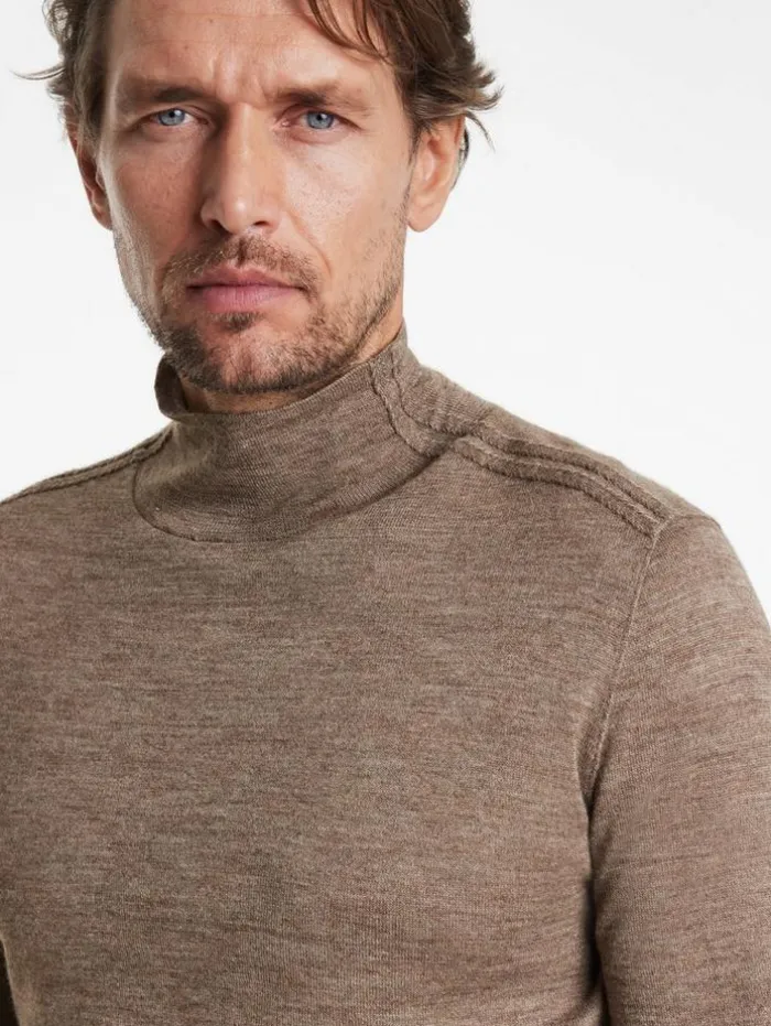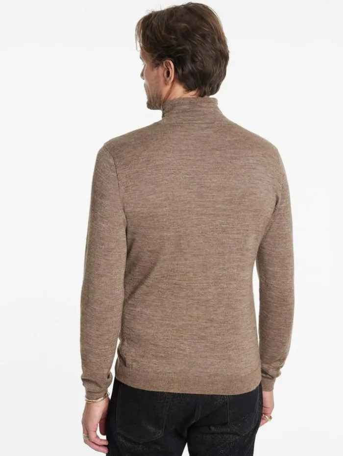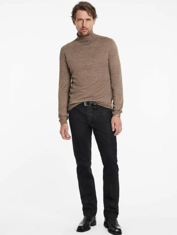 Reimagine audacious knitwear with our Alonte Mock Neck. Forged from an opulent alpaca-silk blend, this piece sculpts a daring silhouette that conforms to the body. It boasts sleek tape detailing along the shoulder that echoes the garment’s storied fabric heritage. Finished with a whipstitch detailing that offers a tactile dimension, projecting an aura of time-worn elegance with a contemporary edge.70% Alpaca, 30% SilkDry CleanLong SleeveRegular FitTape DetailingMock NeckMeasurements: Body Length: 27″, Chest Width (Flat): 20.5″, Sleeve Length: 34.5″