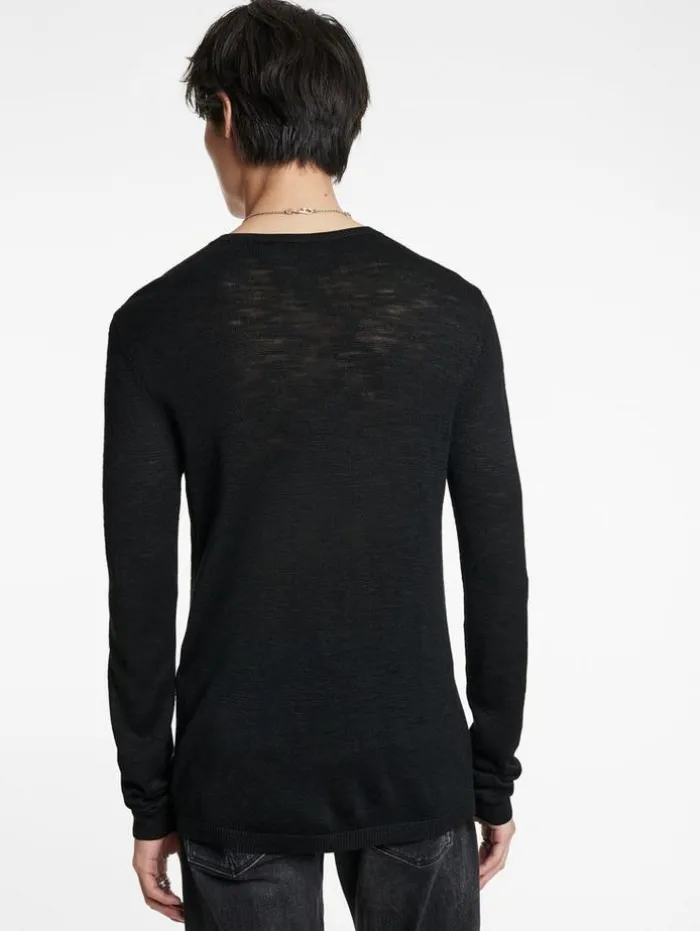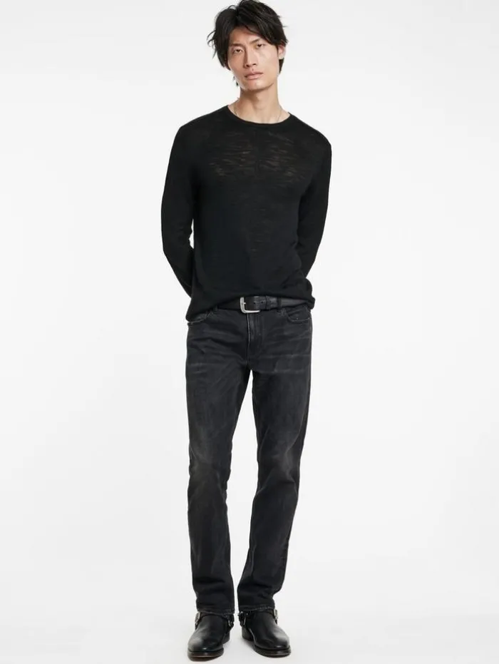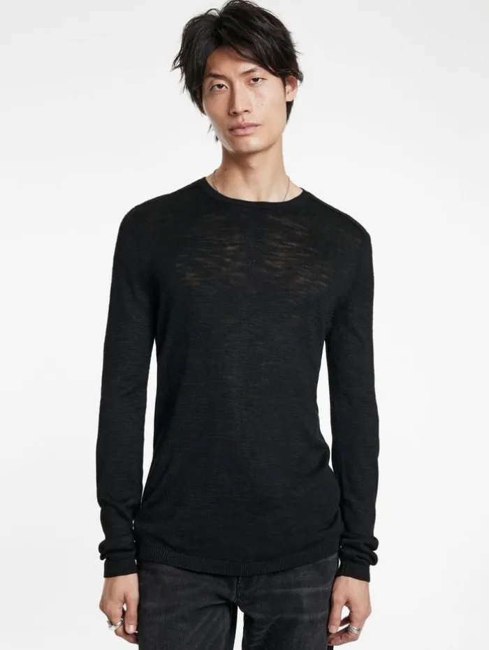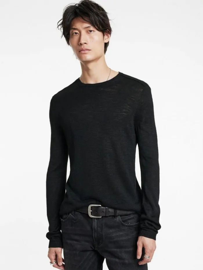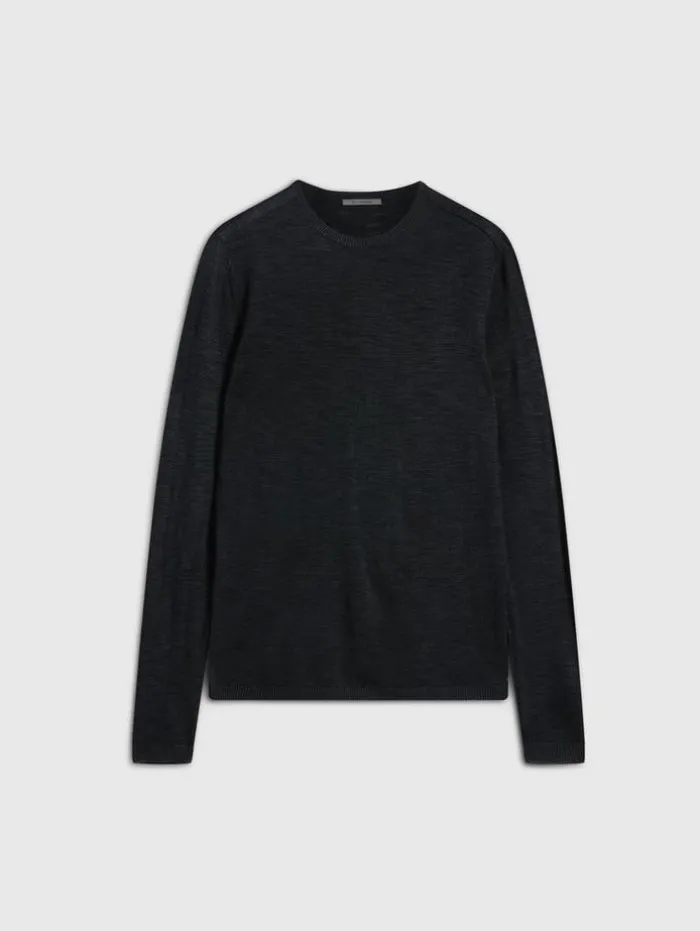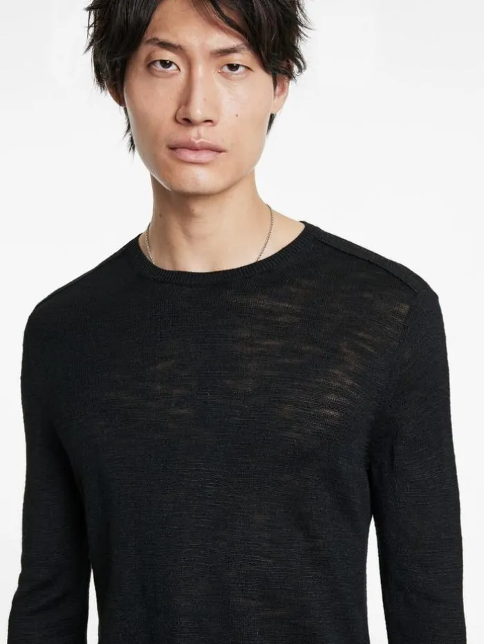 Luxury knitwear takes an understated yet defiant approach with the Aveiro Crew. Woven from Tussah silk, it offers a supple hand feel and showcases a slubby texture that projects captivating highs and lows, giving the fabric a raw, dynamic edge. Finished with tape detailing along the shoulders, it delivers a bold statement to any look.100% SilkDry CleanRegular-FitCrew NeckLong SleeveShoulder Tape DetailMeasurements: Body Length: 27″, Chest Width (Flat): 20.5″, Sleeve Length: 34.5″