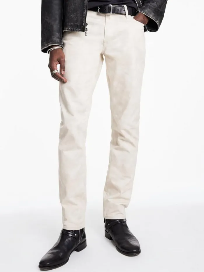 Introducing the timeless appeal of our J702-Stone Washed jeans. These slim-fit jeans offer the best of both worlds, the look of stone-washed denim with the quality of unwashed fabric. Crafted from Japanese cotton fabric, they boast durability and comfort that only pure cotton can provide. The unique feature of these jeans is their random prints, meticulously designed to give a stone-washed appearance, lending a vintage charm without the wear and tear of actual washing. Ideal for a casual day out or a more polished ensemble, these jeans will elevate your style with their unique character and superior fit. 100% Cotton Machine Wash Cold Slim Fit Zipper FlyJapanese FabricRandom Prints Offering Stone Washed AppearanceMeasurements: Waist: 17″, Inseam: 33″, Leg Opening: 7″