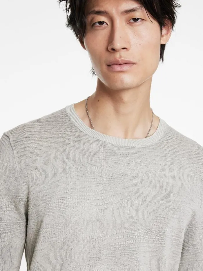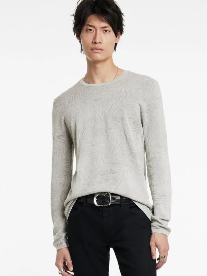 Where nature’s rhythm clashes with urban design, the Mercer Crew emerges. Knitted from organic mercerized cotton, it features an abstract wave pattern that instantly captivates the eye, accentuated by a deliberate wash that deepens the dramatic interplay of textures–highlighting the highs and lows throughout. Finished with a rolled neckline trim and signed off with our signature flag label, it subtly declares its edgy elegance.100% Organic Mercerized CottonMachine Wash ColdCrew NeckLong SleeveAbstract Wave PatternRolled Neck TrimJV Flag LabelMeasurements: Body Length: 27″, Chest Width (Flat): 20.5″, Sleeve Length: 34.5″