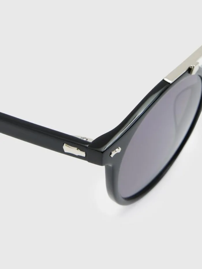 Modern style meets rock and roll comes to life in this stunning men’s John Varvatos frame. The top bar features a silver stainless steel round bar, and this material is used throughout the frame in stunning detail. These cool pops of silver accent inspired by guitar head designs can be found on the temple fronts, and on the temples inside and out. The unique cutaway at the top of the bridge gives this frame a unique shape. The round design of this frame is almost reminiscent of an aviator shape but with a more modern look. The black acetate of this frame grounds the stunning silver accents. CR39 Lens, AR anti-glare coating51-22-145Crafted in Japan