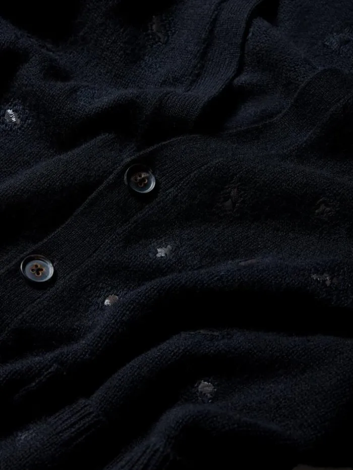 Dress like you’re with the band, our new Mirador Cardigan brings that authentic JV attitude. Crafted from organic cashmere to an easy fitting silhouette with patch pockets and raw cut hems. The grunge look is emphasized with leather patches and randomly placed embroidered artwork. 100% Organic CashmereDry Clean OnlyButton ClosureLong SleeveLeather Patches and EmbroideryPatch Pockets Raw Cut EdgesFront Body length: 27″, Chest: 21″, Across Shoulder: 18″, Sleeve length: 34.5″
