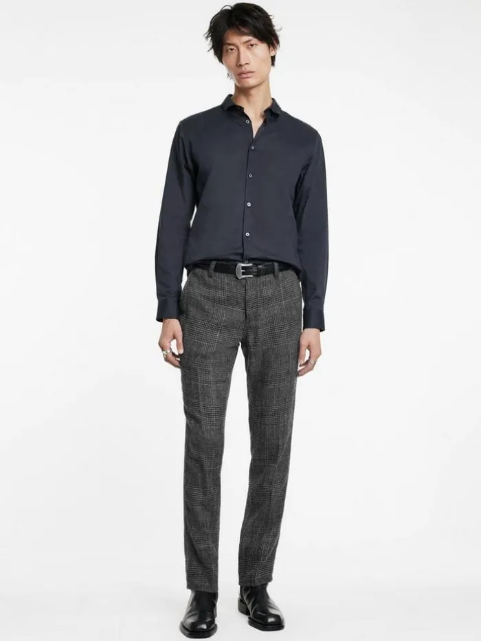 Fall ’24 presents a modern take on classic tailoring with our updated Motor City Pants. These slim-fit pleated pants are crafted from virgin wool, featuring a soft, light, felted texture enhanced by a tumbler washed finish for a uniquely rugged yet polished appearance. The sleek silhouette strikes a balance between timeless elegance and contemporary edge. Pair them with a tailored jacket or leather outerwear for a sophisticated, effortlessly chic look.91% Cotton, 9% PolyamideDry Clean OnlyLow Rise, Sim FitZipper FlyPleated DetailingTumble WashedMeasurements: Waist: 34.5″, Hip: 41.5″, Inseam: 33″