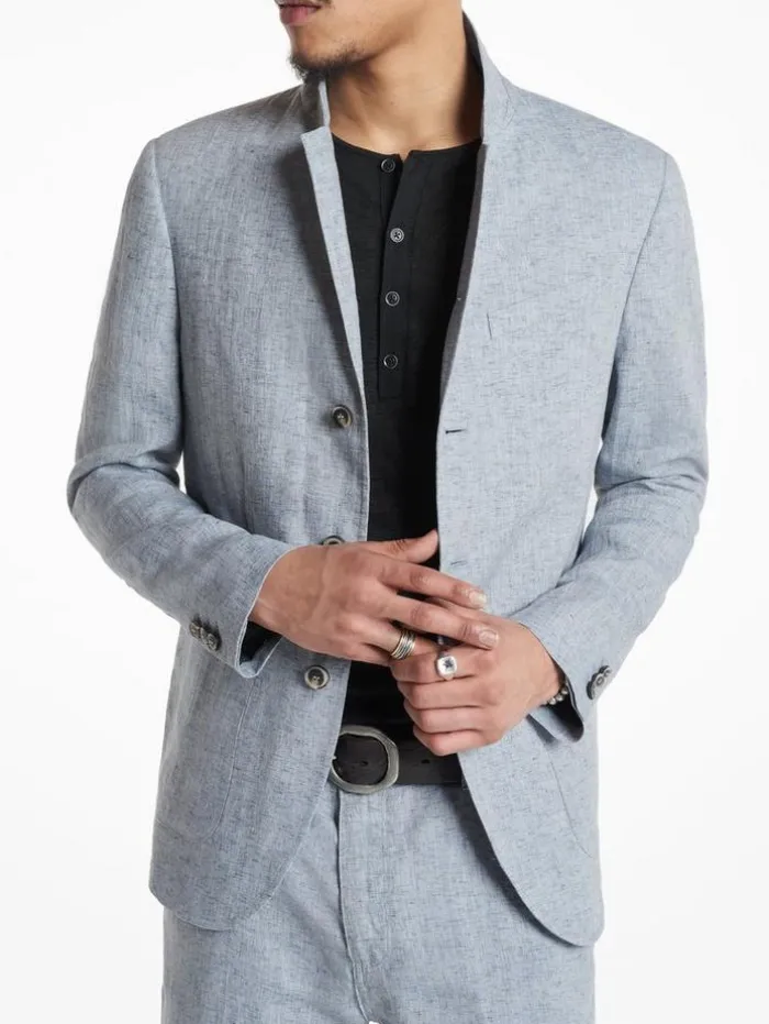 This Priory Jacket takes its inspiration from classic suiting. Crafted from linen with an additional crosshatch motif for a refined texture. There’s room for heritage tailoring in everyone’s wardrobe even in the summer months. 100% LinenDry Clean OnlySlim FitPatch PocketsButton FrontCross Hatch TextureItalian Cloth