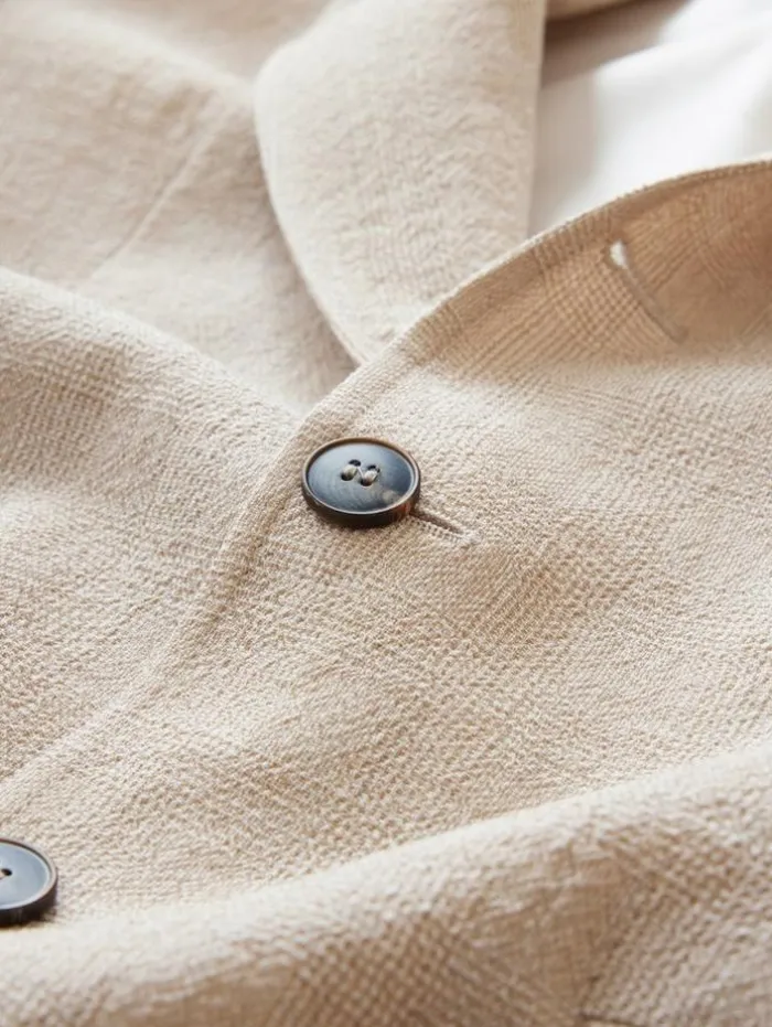 The Rind Jacket narrates Italian heritage and excellence through its meticulous tailoring. This slim-fit jacket, with its classic notch lapel and refined flap pockets, is a staple of JV elegance. It’s crafted from fine Italian fabric, distinguished by a unique tumbled finish that imparts textured character with varying widths and intentional crinkles. These artisanal qualities, resulting from a specialized production process, require a generous appreciation for its one-of-a-kind appearance and tactile richness. Ideal for those who value depth in tradition and the distinction of hand-finished detail, the Rind Jacket stands as a tribute to enduring style and craftsmanship. 100% Virgin WoolLining: 100% CuproDry Clean OnlyButton ClosureSlim FitNotch LapelFlap Hip PocketsTumbled FinishFine Italian FabricMade In ItalyMeasurements: Front Body Length: 30”, Center Back Body Length: 29.25”, Across Shoulder: 18.75”, Chest: 20.25” Flat, Sleeve Length: 26”