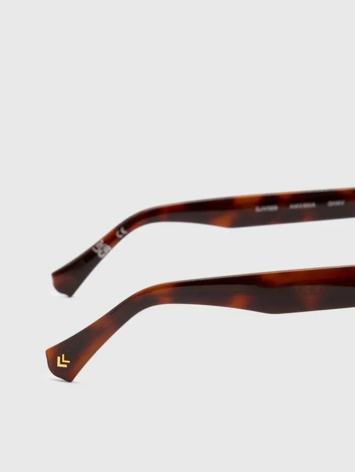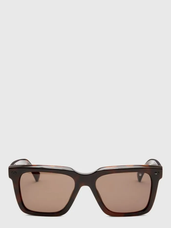 Inspired by the vibrant world of music, our Wooster Square Sunglasses echo the distinctive features of a guitar headstock, with rivets accentuating the temple head and front endpiece. These havana frames, a testament to our dedication to artistry, are crafted from acetate, boasting elaborate detailing that elevates the design. The solid brown lenses, enhanced with a special AR blue back coating offer both unique style and additional eye protection.Frame Material: AcetateLens Color: Solid BrownGuitar Headstock inspired RivetsAR Blue Back Coating