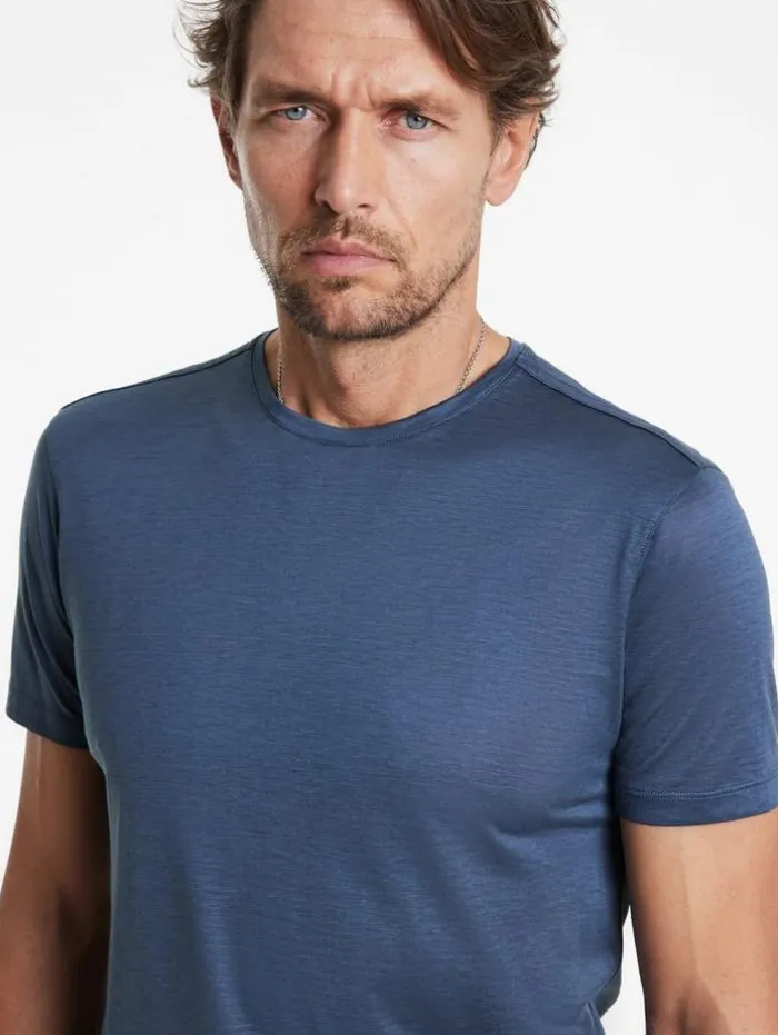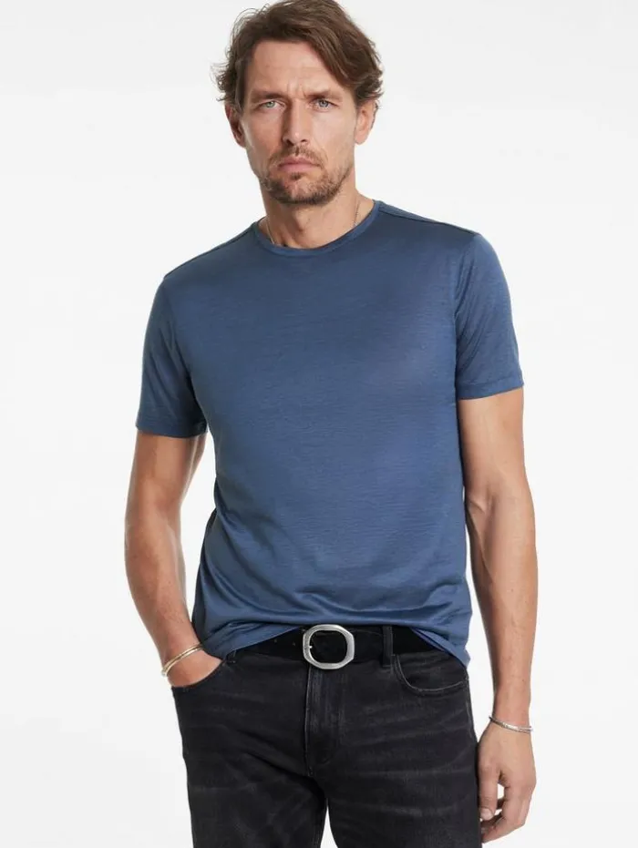 The defiance is all in the details of our Amato Crew. Woven in Portugal from a premium silk-cotton blend, this sleek crew neck exudes subtle rebellion with its unique shoulder tape detailing. Designed for the discerning JV man, it’s an essential core piece for your everyday wear.60% Mulberry Silk, 40% Organic CottonMachine Wash ColdCrew NeckRegular-FitShort SleeveTape DetailMade in PortugalMeasurements: Body Length: 27.5″, Chest Width (Flat): 20.75″, Sleeve Length: 17.5″