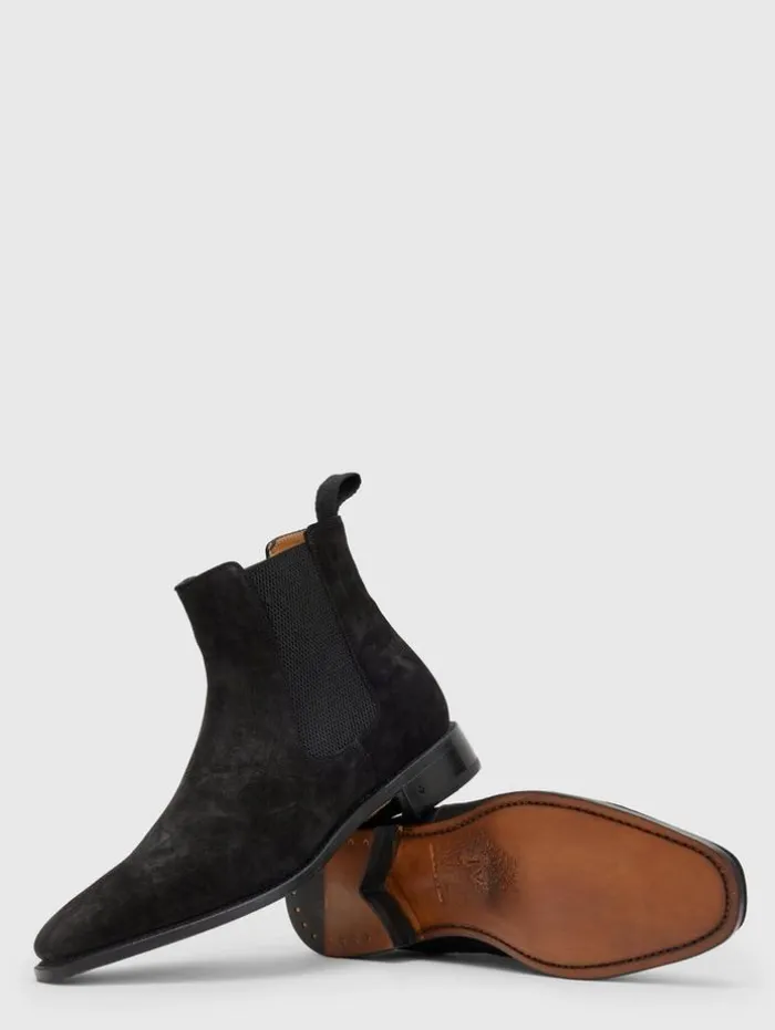 A classic chelsea boot with refined textures. The Amsterdam Boots are crafted from luxury suede using old-world techniques and craftsmanship. The suede is completed with a rapid stitch construction process for an authentic feel.Upper: 100% Calf LeatherLining And Sock: 100% LeatherOuter Sole: 100% Leather and Man Made MaterialsSlip OnHeelPull TabsMade in Italy