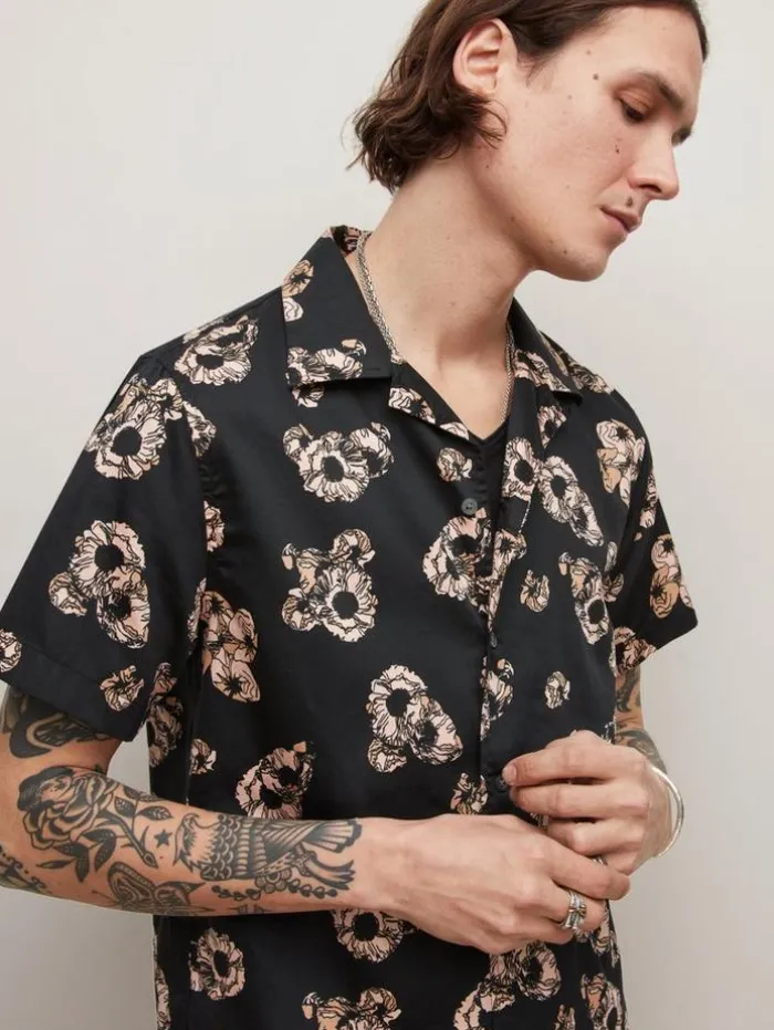 DANNY CAMP SHIRTSet off spring with bold florals. Crafted from a silky cotton fabric, the Danny Camp Shirt is ideal for lightweight dressing with total ease. Featuring a camp collar, short sleeves and distinctive flat hem – you can guarantee this will be the ultimate seasonal staple.100% CottonMachine Wash Cold Camp CollarFlat Hem Button Closure Silky Hand Feel Floral Print Model Is Wearing a Size Medium
