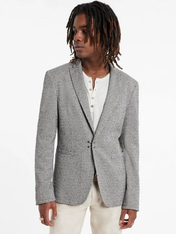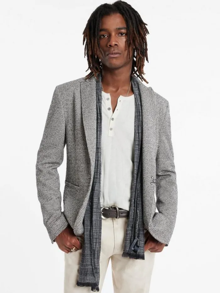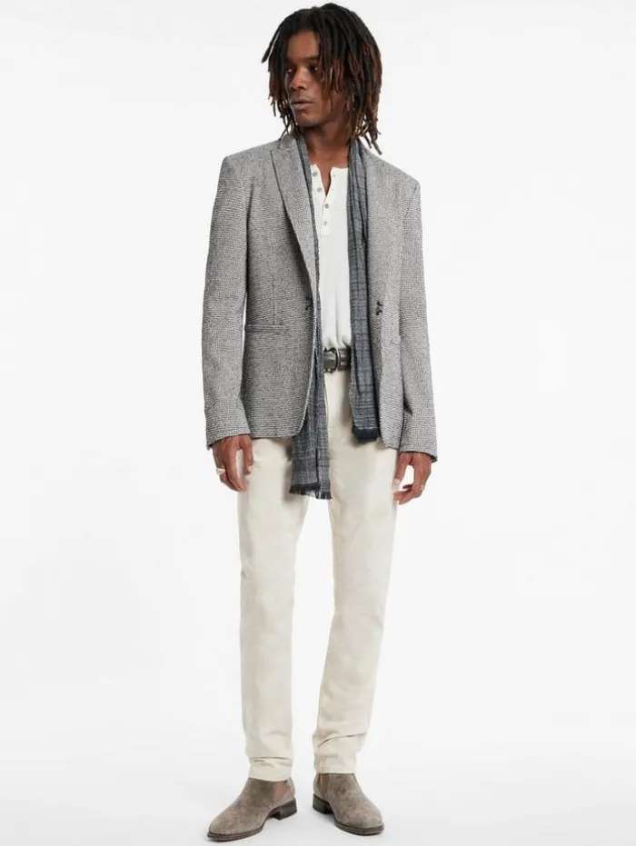 A contemporary approach to tailoring is embodied in the Lynn Jacket. This peak lapel jacket showcases the JV signature style with its unique hook and bar closure at the center front, adding a distinctive edge. Crafted from premium Italian fabric, the Lynn Jacket offers unparalleled quality in both fit and feel. Its sharp peak lapels are complemented by the sleek hook and bar trim, marrying timeless elegance with a contemporary twist. Ideal for those who value precision in design, the Lynn Jacket is an essential statement piece that brings a modern touch to any sophisticated wardrobe. 91% Cotton, 9% PolyamideLining: 100% CuproDry Clean OnlyHook & Bar ClosurePeak LapelItalian FabricMade In ItalyMeasurements: Front Body Length: 29.5”, Center Back Body Length: 28.75”, Across Shoulder: 18.5”, Chest: 20.875” Flat, Sleeve Length: 26.25”