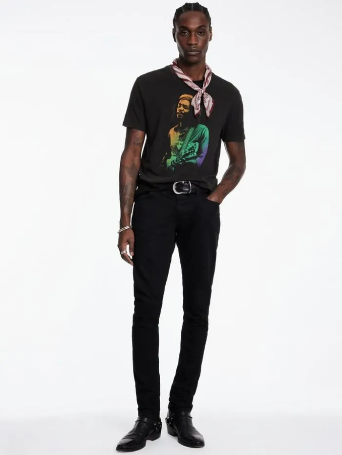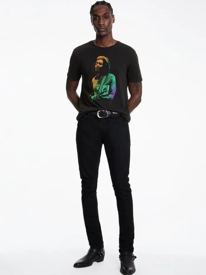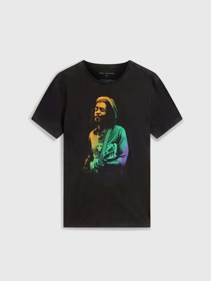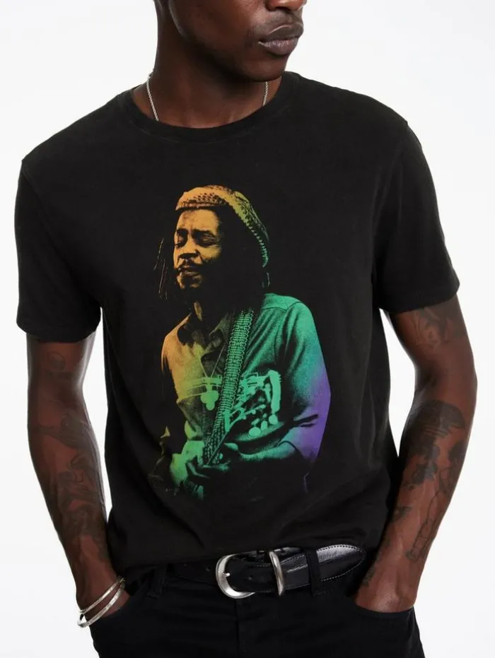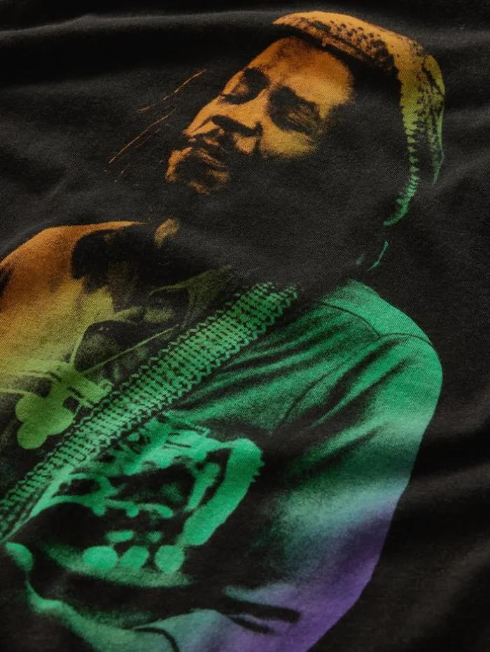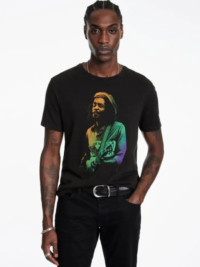 Step into a realm of iconic style with our Peter Tosh Tee. This short-sleeve crewneck, treated with a vintage wash, offers a classic yet relaxed feel, perfect for any casual occasion. The front features a striking photograph print of Peter Tosh, rendered in a vivid, colorful gradient that captures the essence of his dynamic persona. On the back, the simple yet bold statement “TOSH” pays homage to the legendary musician’s enduring influence. This tee is a tribute to musical history, ideal for fans and fashion enthusiasts alike. The Peter Tosh Tee is a standout addition to any wardrobe, offering a unique way to celebrate a musical legend.100% Cotton Machine Wash ColdCrewneckShort SleeveVintage WashColorful GradientPrinted Peter Tosh Photograph With Tosh At BackMeasurements: Body Length: 28″, Chest Width (Flat): 20.5”, Shoulder Width: 18”, Sleeve Length: 16.75″