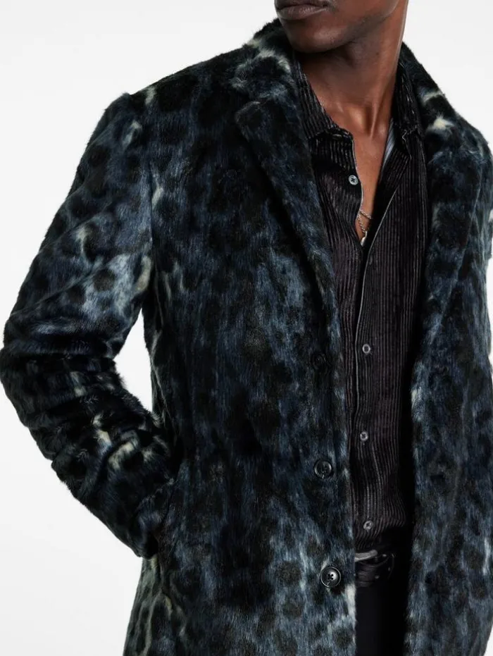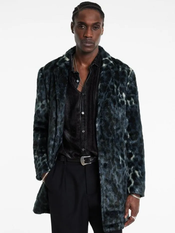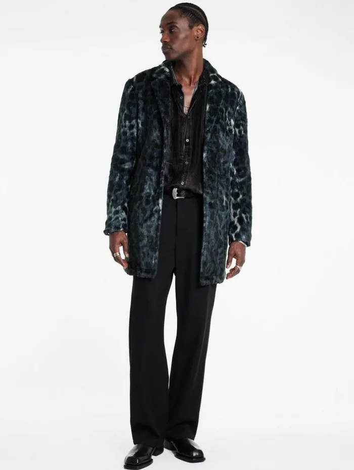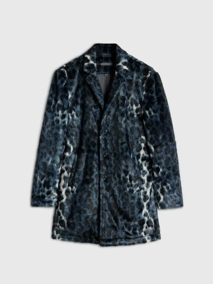 For the JV gentleman, a top coat is key in his style arsenal – every man needs one, and our rendition elevates this quintessential piece with an audacious twist. Showcasing a leopard print on soft, responsibly sourced faux fur, it provides warmth while its dramatic flair is matched by unparalleled comfort. Finished with a multi-button front, its structured silhouette serves as an exceptional outer layer. Don the Templeton for a night out over a crisp button-down and flocked denim, or layer it over a sleek knit mock neck and tailored pants for a look that radiates confidence.100% MAC Faux FurDry Clean OnlyCollarMulti-Button ClosureLeopard PatternMeasurements: Body Length: 93cm, Chest Width (Flat): 55cm, Shoulder Width: 49cm, Sleeve Length: 66.5cm