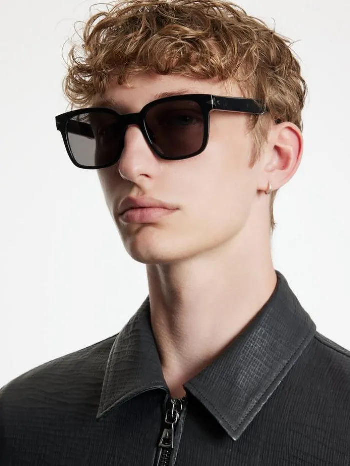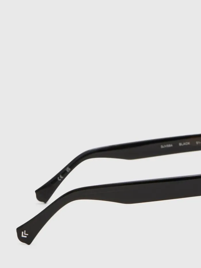 This frame is effortlessly cool with its traditional shape, and rock and roll edge. The wide temple arms and slightly rounded lenses. Are a fun take on this traditional look. The John Varvatos logo can be found on the temples in silver metal. Available in black, black texture, and blonde Havana, these frames also have complementary lenses in unique colors has a special AR blue black coating for additional eye protection.