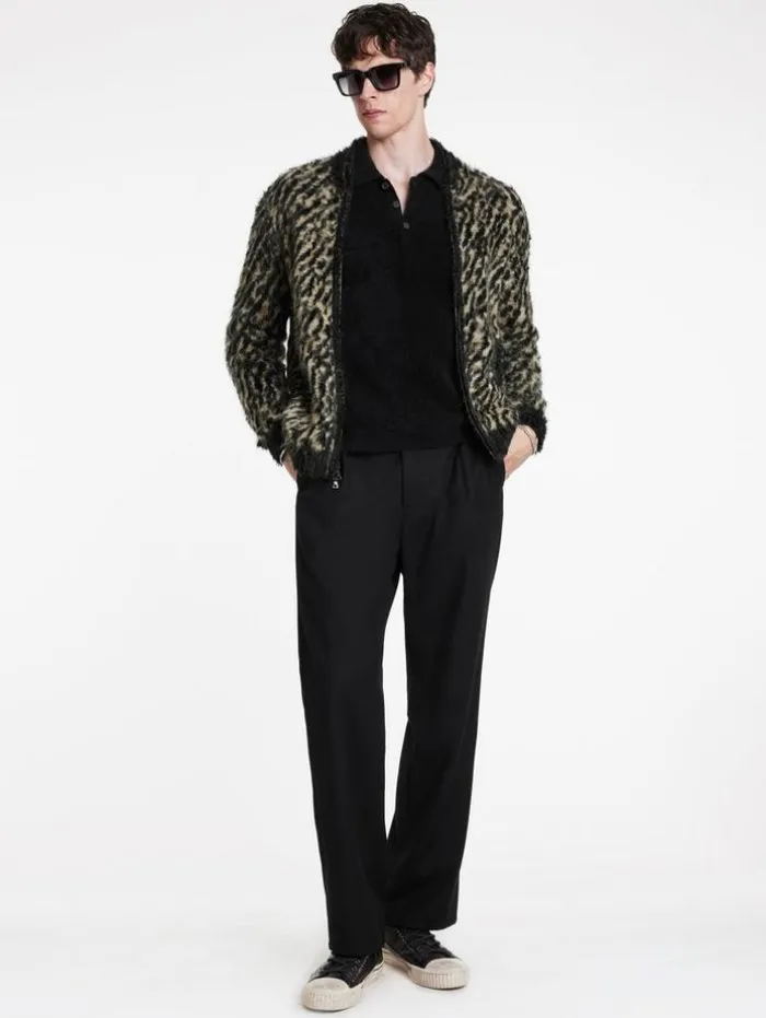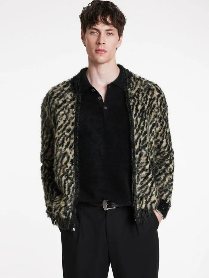 The wild side of luxury presents itself in the Camino Bomber. Flaunting a textured zebra jacquard, this jacket is expertly crafted from a blend of silky fur yarns, combining extrafine merino with superkid mohair for unparalleled softness and warmth. Finished with a sleek gunmetal zipper, this bomber provides the perfect edge for memorable nights out on the town.100% Polyamide + 50% Superkid Mohair, 20% Extrafine Merino, 30% PolyamideDry Clean OnlyRegular FitGunmetal Zip ClosureZebra Jacquard PatternMeasurements: Body Length: 26.5”, Chest Width (Flat): 20.5″, Sleeve Length: 34.5”