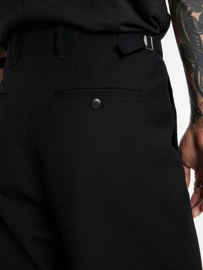 The Ely Pants are a new addition to our collection. Understated, they provide a relaxed yet elegant appeal. With a belted waist for extra shaping where needed, we’re tucking in a band tee to achieve the full look. 53% Recycled Polyester, 43% Wool, 4% Elastane Dry Clean OnlyRelaxed Fit Belted Waistband Button ClosureMeasurements: Waist: 17.125″, Inseam: 31.5″, Leg Opening: 9.625″