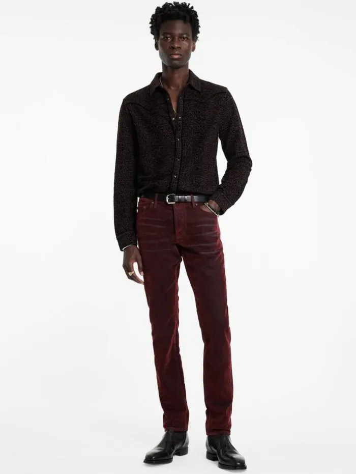 The unique flocked finish introduces a velvety feel to the classic five-pocket design of the Hendry Wash pants. Crafted from luxurious cotton, this J702 slim-fit shape unites comfort with a distinctive edge. Pair them with your favorite henley and a leather jacket for an effortlessly polished look that stands out.100% CottonFinishing: 100% ViscoseMachine wash coldSlim-fitFive pocketsZip and button ClosureFlocked techniqueMeasurement: Waist: 34″, Hip: 40.5”, Inseam: 33″