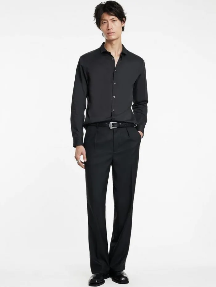 Tailoring where it counts – meet the Orchard Shirt. Crafted from premium Pima cotton, this slim-fit shirt offers exceptional comfort with its yarn-dyed popeline, known for natural stretch and softness. The long staple, thin yarns ensure durability and a luxurious feel. Featuring a wire-inserted shaped stand collar for a structured look, the shirt also boasts a distinctive popeline sheen and a subtly textured appearance, thanks to mercerization and calendering. Layer it over an essential tee or wear it solo for a polished appearance.100% CottonDry Clean OnlySlim FitButton Closure Long SleeveWire inserted CollarPopeline Sheen EffectMeasurements: Body Length: 78cm, Chest (Flat): 54.5cm, Sleeve Length: 65cm, Neck Circumference: 43cm