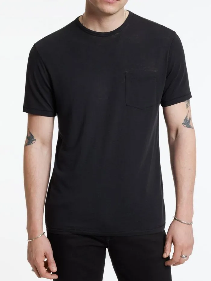 The Bond Burnout T-Shirt is a definitive essential that complements any item in your closet. This short sleeve shirt is crafted from a comfortable cotton blend that features a visually appealing burnout texture. With a convenient patch pocket at the chest, it adds a functional element to its classic design. Whether layered under our signature leathers or worn on its own, the Bond Crew undoubtedly takes center stage in your look. Main: 60% Cotton 40% PolyesterMachine Wash Cold Crew Neck Short Sleeve Burnout EffectSingle Front Patch Pocket