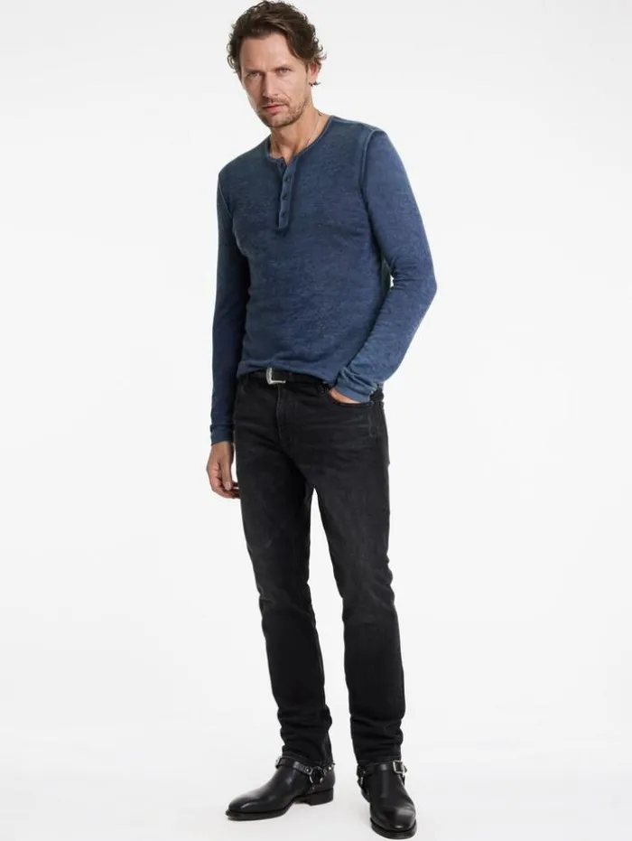 The Christie Henley redefines casual menswear standards. Crafted from a luxurious silk cashmere blend, it features distinctive tones, expertly dyed with a unique reverse print for a subtle refined pattern. Finished with antiqued metal buttons, this long sleeve henley offers relaxed sophistication with a touch of vintage charm, effortlessly elevating any ensemble with its understated elegance.70% Silk, 30% CashmereHand Wash ColdLong SleeveAntiqued Metal ButtonsReverse PrintMeasurements: Body Length: 27.5″, Chest Width (Flat): 20″, Sleeve Length: 34.5″