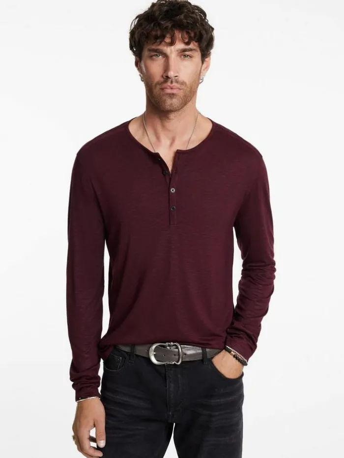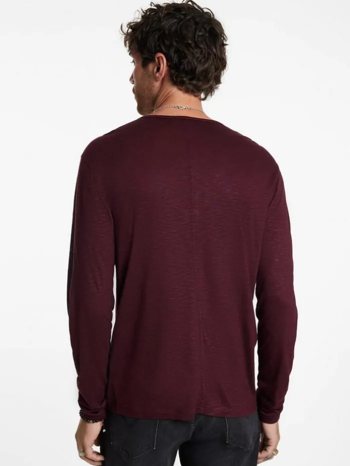 From Portugal comes the Danville Henley, a core style renowned for its silky modal blend fabric with a richly textured finish. Subtly enhanced with brushed antiqued metal buttons, shoulder tape, and meticulous seam detailing, this understated essential adapts to any look.40% Modal, 40% Viscose, 20% WoolDry cleanCollarLong sleeveAntiqued metal buttonShoulder tape detailSeam detail on button placketMeasurements: Body Length: 27.5”, Shoulder Width: 18”, Chest Width: 20.25”, Sleeve Length: 34.75”