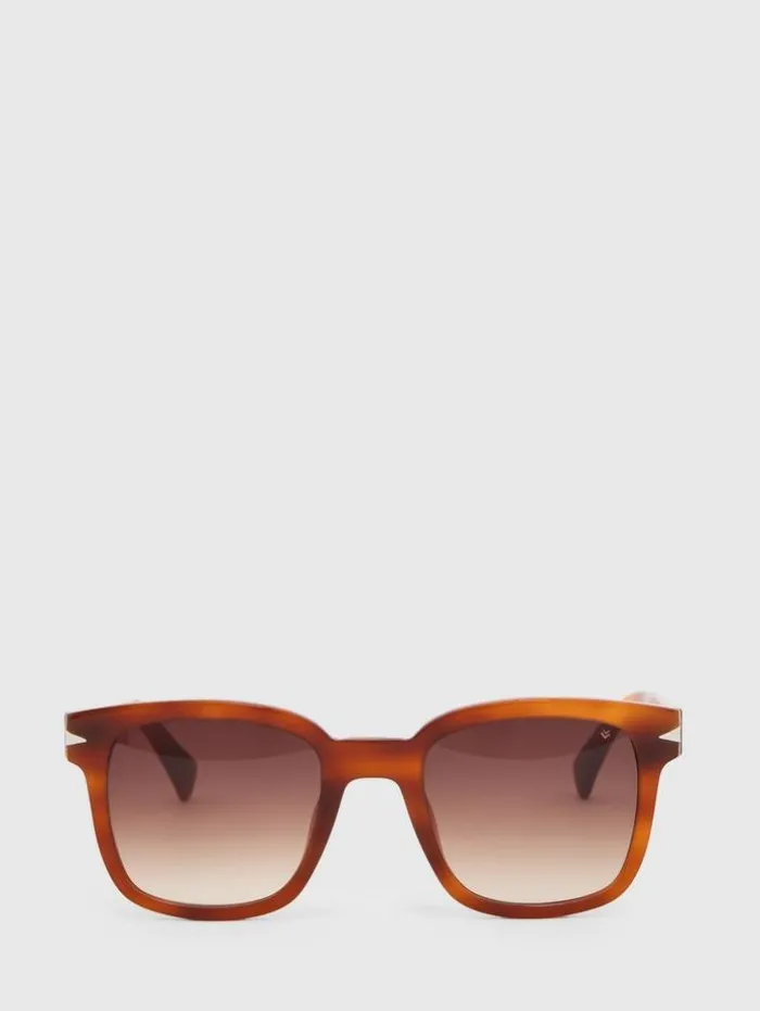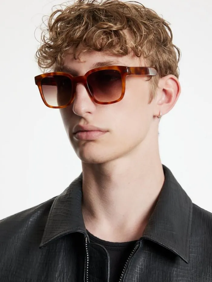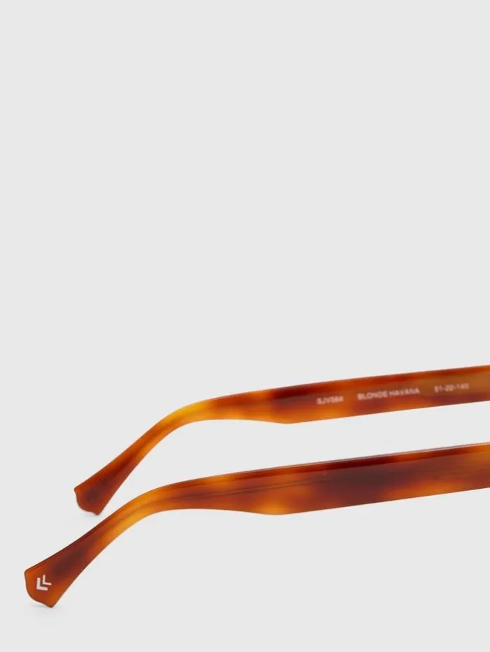 This frame is effortlessly cool with its traditional shape, and rock and roll edge. The wide temple arms and slightly rounded lenses. Are a fun take on this traditional look. The John Varvatos logo can be found on the temples in silver metal. Available in black, black texture, and blonde Havana, these frames also have complementary lenses in unique colors has a special AR blue black coating for additional eye protection.