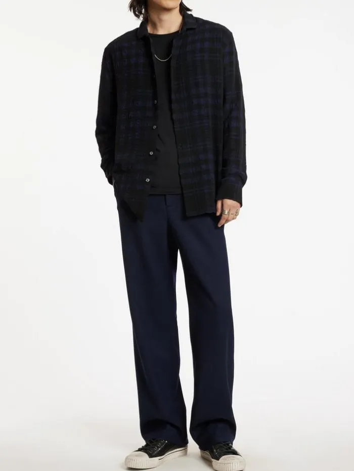 The Ely Pants are a new addition to our collection. Understated, they provide a relaxed yet elegant appeal. With a belted waist for extra shaping where needed, we’re tucking in a band tee to achieve the full look. 53% Recycled Polyester, 43% Wool, 4% Elastane Dry Clean OnlyRelaxed Fit Belted Waistband Button ClosureMeasurements: Waist: 17.125″, Inseam: 31.5″, Leg Opening: 9.625″