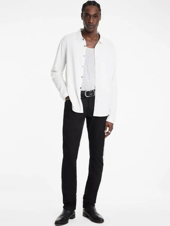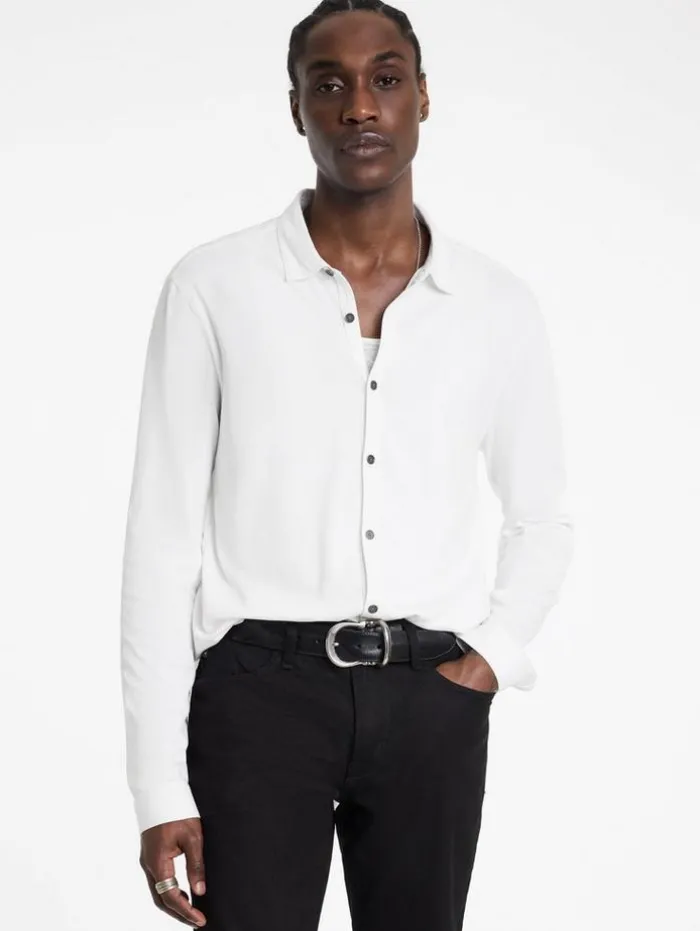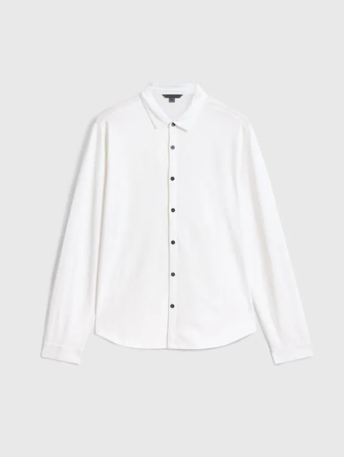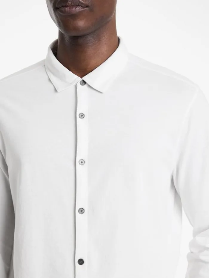 Precisely tailored, the Levi Shirt has been cut from a soft organic cotton knit fabric. Finished with a sharp collar and smooth button front closure, it achieves a sleek, constructed profile. Pair it with our Mercer Pant for a polished appearance.100% Organic CottonMachine Wash ColdLong SleeveCollarButton Closure