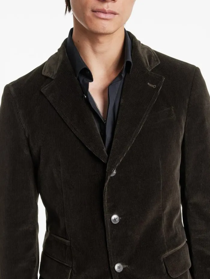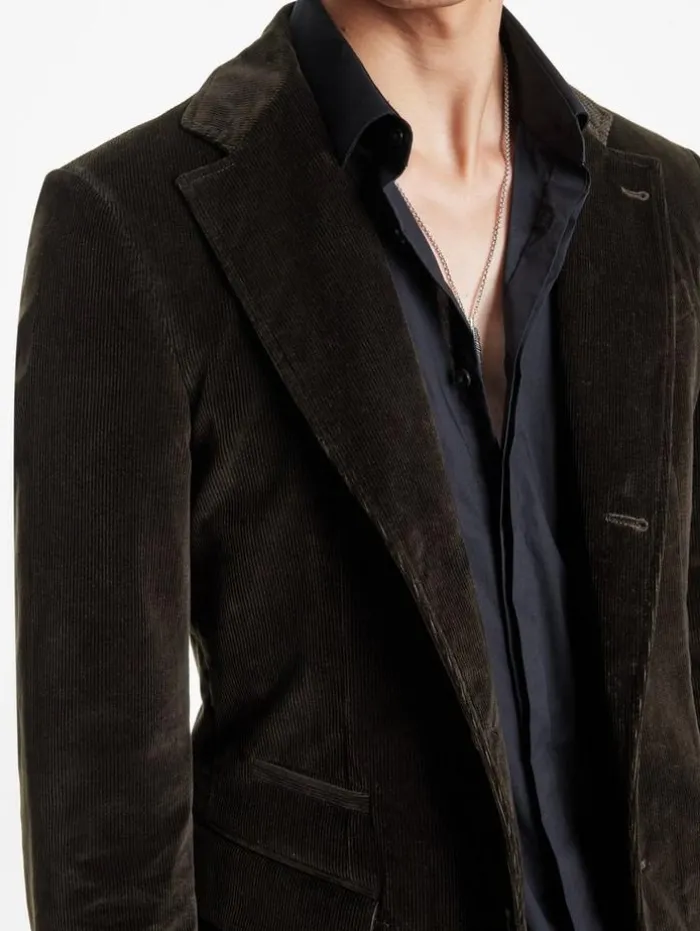 Each thread of our Rind Jacket narrates a tale of classic luxury and exceptional craftsmanship. Tailored in a slim fit with a refined notch lapel, this jacket is crafted from fine corduroy treated with an AIRO finish, giving it a unique wavy and contemporary appearance that distinguishes it from classic velvet. The added stretch ensures a comfortable, modern fit, while the infusion of viscose lends the fabric a subtle shine, enhancing its elegant appeal. Equipped with functional flap pockets, the Rind Jacket embodies modern elegance, where every detail reflects a harmonious blend of past and present influences.98% Cotton, 2% ElastaneDry Clean OnlySlim FitNotch LapelButton Front ClosureFlap Hip PocketsCorduroy TreatedAIRO FinishMade in ItalyMeasurements: Body Length: 77cm, Chest Width (Flat): 51.5cm”, Shoulder Width: 47cm, Sleeve Length: 66cm