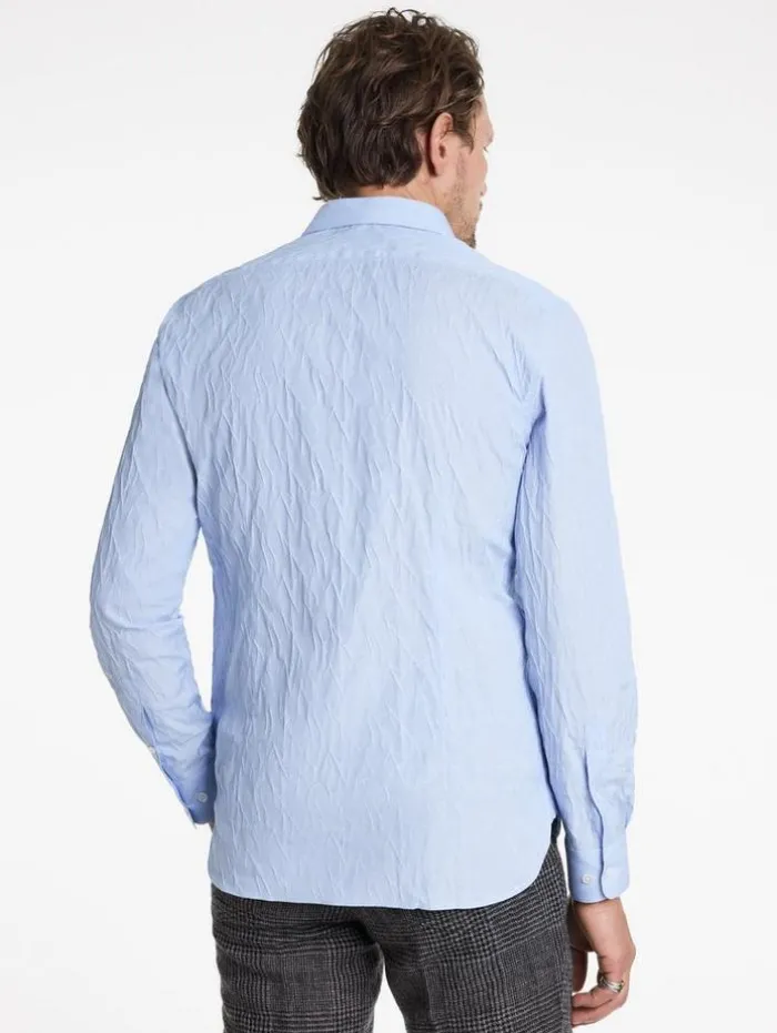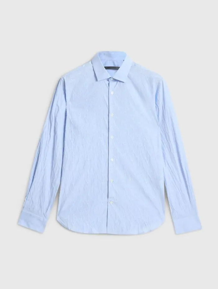 The Stella Dress Shirt redefines classic elegance with a modern take. Tailored to a slim fit and featuring the distinctive Stella collar, this shirt is crafted from a stretch jacquard Italian cotton blend, which enhances its sleek silhouette with a subtle textured aesthetic. The design seamlessly unites traditional style with contemporary elements. Effortlessly transitioning from formal to casual settings, this dress shirt is an indispensable staple in any discerning wardrobe.94% Cotton, 5% Polyamide, 1% ElastaneDry Clean OnlySlim FitStella CollarLong SleeveConcealed Button PlacketStretch Jacquard FabricMade in ItalyMeasurements: Body Length: 77cm, Chest (Flat): 54.5cm, Sleeve Length: 65cm, Neck Circumference: 42cm
