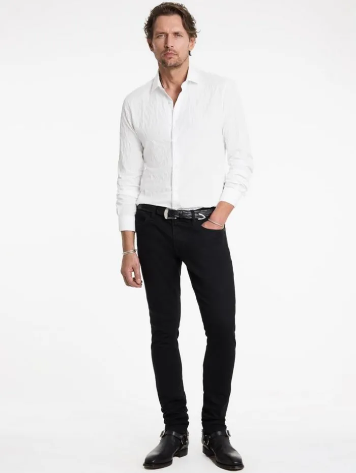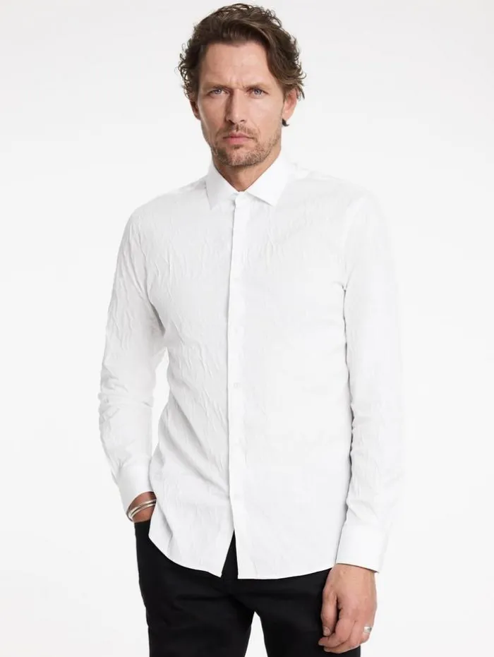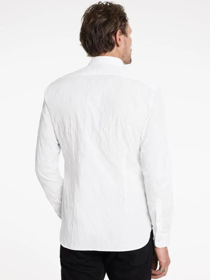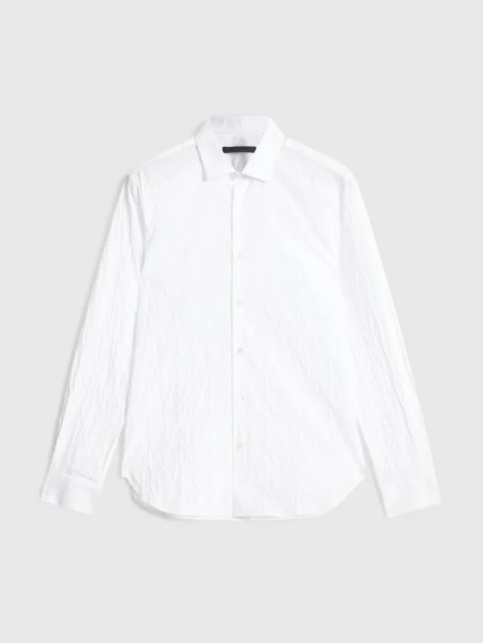 The Stella Dress Shirt redefines classic elegance with a modern take. Tailored to a slim fit and featuring the distinctive Stella collar, this shirt is crafted from a stretch jacquard Italian cotton blend, which enhances its sleek silhouette with a subtle textured aesthetic. The design seamlessly unites traditional style with contemporary elements. Effortlessly transitioning from formal to casual settings, this dress shirt is an indispensable staple in any discerning wardrobe.94% Cotton, 5% Polyamide, 1% ElastaneDry Clean OnlySlim FitStella CollarLong SleeveConcealed Button PlacketStretch Jacquard FabricMade in ItalyMeasurements: Body Length: 77cm, Chest (Flat): 54.5cm, Sleeve Length: 65cm, Neck Circumference: 42cm