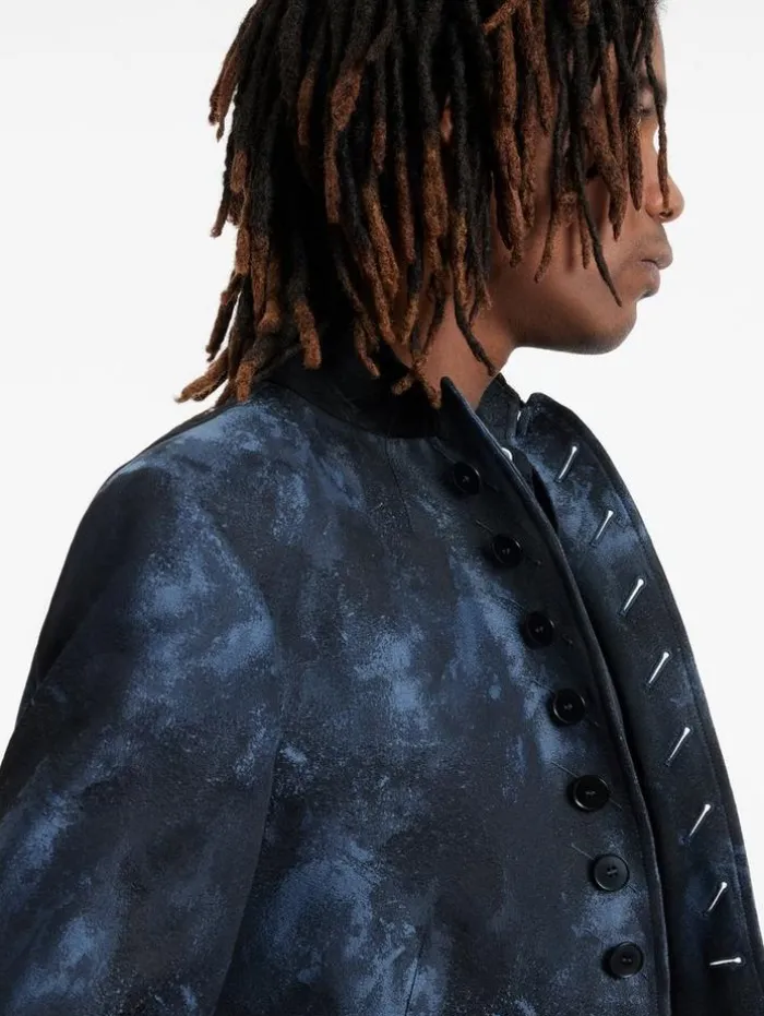 The Woodward Jacket, in its striking blue stone hue, redefines innovative tailoring, offering a sleek, slim fit that captures modern sophistication. This jacket stands out with its distinctive multi-button front and cut-away design, featuring a convertible peak lapel that allows for versatile styling. Crafted from shaded monochrome jacquard fabric, it embodies the refined craftsmanship of Italian textiles. The fabric’s subtle textural interplay adds depth to the jacket’s monochromatic palette, making it a statement piece that transcends traditional boundaries. Perfect for the style-conscious individual, the Woodward Jacket is a bold reinterpretation of classic tailoring. 68% Cotton, 32% PolyesterLining: 100% CuproDry Clean OnlyMulti-Button ClosureSlim-FitConvertible Peak LapelItalian Jacquard FabricMade In ItalyMeasurements: Front Body Length: 30.625”, Center Back Body Length: 29.5”, Across Shoulder: -, Chest: 20” Flat, Sleeve Length: 26.5”