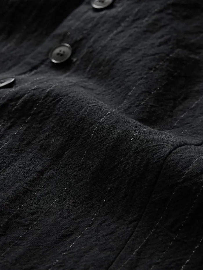 Exemplifying JV’s sartorial mastery, the Wooster Vest offers a seamless blend of tradition and contemporary finesse. This collarless design, a classic JV Wooster, is accentuated with front body darts and welt hip pockets, reflecting meticulous tailoring. It’s crafted from Italian fabric adorned with a sophisticated pin stripe pattern, adding an element of refined elegance. The absence of a collar lends a modern touch to its silhouette, making the vest versatile for various styling options. Whether paired with complementary suiting for a cohesive ensemble or worn over a tailored shirt as a stand-alone statement piece, the Wooster Vest is a testament to timeless style and impeccable craftsmanship. 77% Cotton, 21% Linen, 2% Virgin WoolLining: 100% CuproDry Clean OnlyMulti-Button FrontFront Body DartsWelt Hip PocketsItalian Pin-Stripe Pattern FabricMade In ItalyMeasurements: Front Body Length: 25.625”, Center Back Body Length: 23.5”, Across Shoulder: 14.5”, Chest: 20.5”