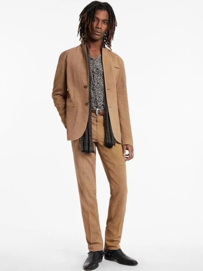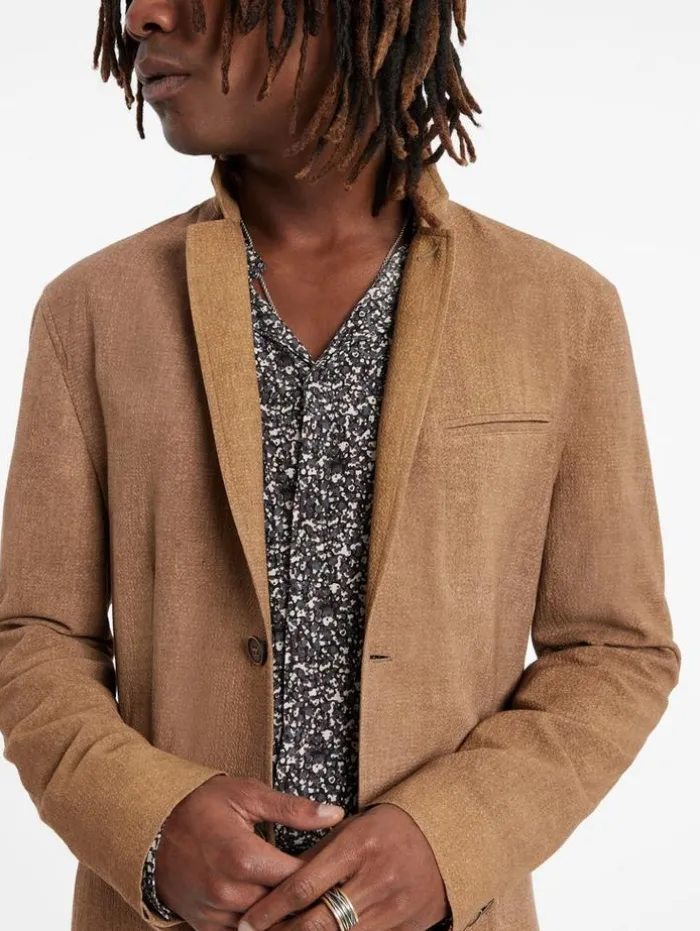 Tailoring in classic JV style, the Allen Jacket is unstructured for a soft shape that drapes elegantly across the body. This slim-fit notch lapel jacket captures the essence of casual sophistication in a versatile clay brown hue. Crafted from fine Italian cotton, its fabric undergoes a double cold-dyed process enriching the jacket’s with a deep, dimensional color while delivering a lived-in feel. Its embossed texture invites a subtle, tactile interest. Unlined for lightness and breathability, the Allen Jacket is the embodiment of understated luxury, ideal for those who value comfort without sacrificing a polished look. 100% CottonDry Clean OnlyButton ClosureSlim FitNotch LapelDouble Cold DyedEmbossed TextureMade In ItalyMeasurements: Front Body Length: 30”, Center Back Body Length: 29.25”, Across Shoulder: 18.5”, Chest: 21” Flat, Sleeve Length: 26.25”