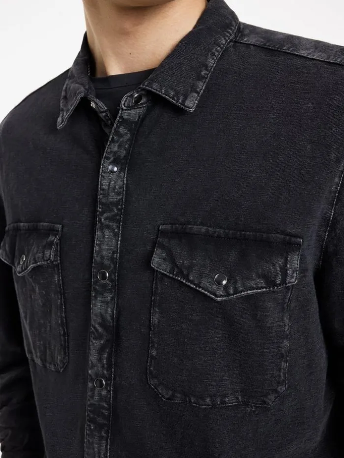 Western shirts are a versatile staple, the Arvon is our take. Crafted from cotton with a slub texture that’s been pigment over-dyed with a vintage wash. This expert technique gives the shirt a distinct look and feel, while still keeping the cotton’s soft-touch appeal. It’s tailored authentically with classic western details and our signature flag label on the left seam. 100% Cotton Machine Wash Cold Snap Button Closure Long SleevesSlub Texture Vintage Wash Pointed Yoke Curve Hem Patch Flap Pockets Functional Cuffs Flag Label On Left Hand Seam