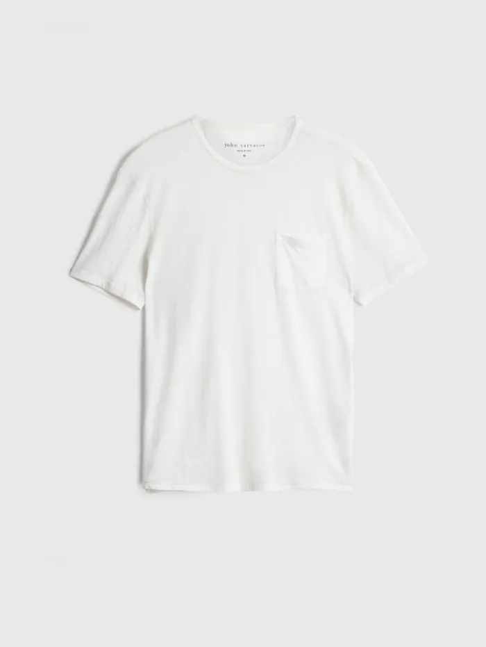 The Bond Burnout T-Shirt is a definitive essential that complements any item in your closet. This short sleeve shirt is crafted from a comfortable cotton blend that features a visually appealing burnout texture. With a convenient patch pocket at the chest, it adds a functional element to its classic design. Whether layered under our signature leathers or worn on its own, the Bond Crew undoubtedly takes center stage in your look. Main: 60% Cotton 40% PolyesterMachine Wash Cold Crew Neck Short Sleeve Burnout EffectSingle Front Patch Pocket