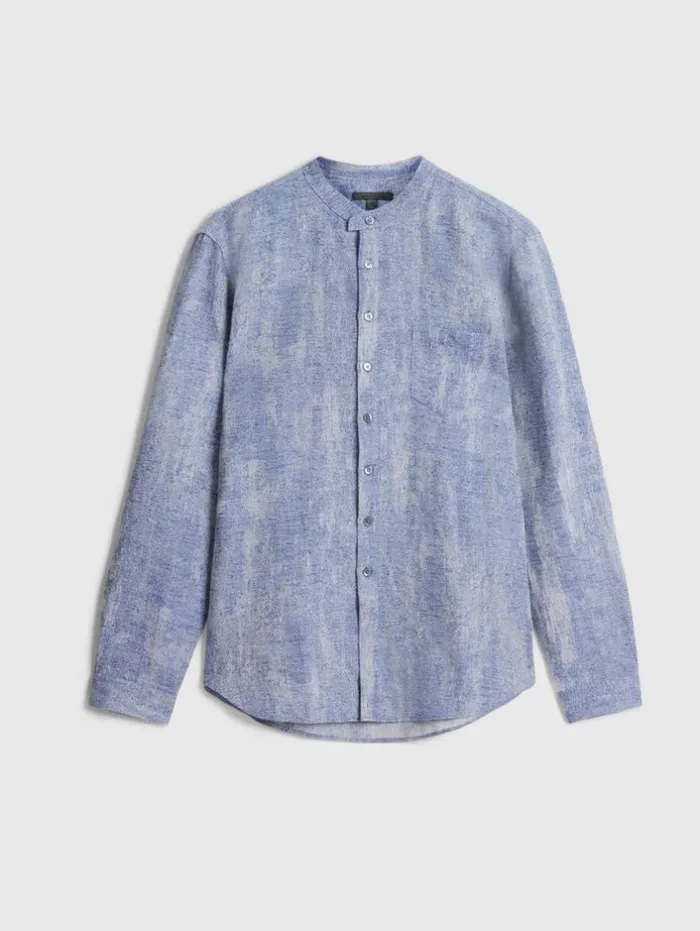 Crafted from a lightweight cotton and linen blend fabric, the Bryan Shirt showcases refined tailoring. The slim fitting shape is accentuated with an extended top collar while classic chest pockets are the finishing touch.70% Cotton, 30% LinenMachine Wash ColdButton ClosureLong Sleeves Extended CollarSlim FitMeasurements: Front Body Length: 30.125″, Center Back Body Length: 30.5, Across Shoulder: 19.25″, Chest: 21.75″ Flat Sleeve Length : 26.75″