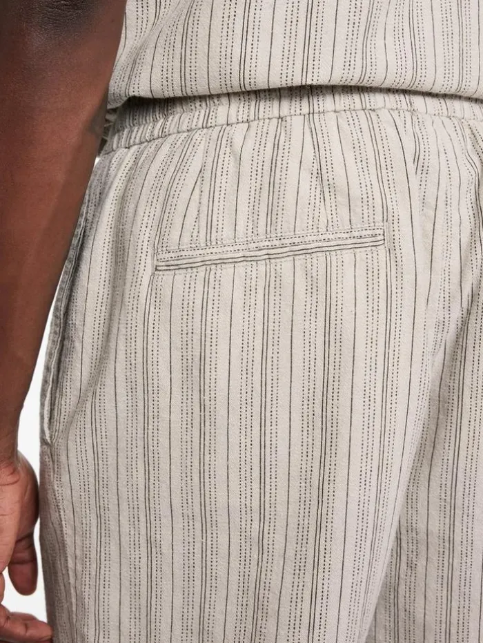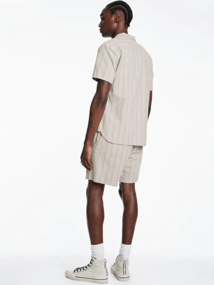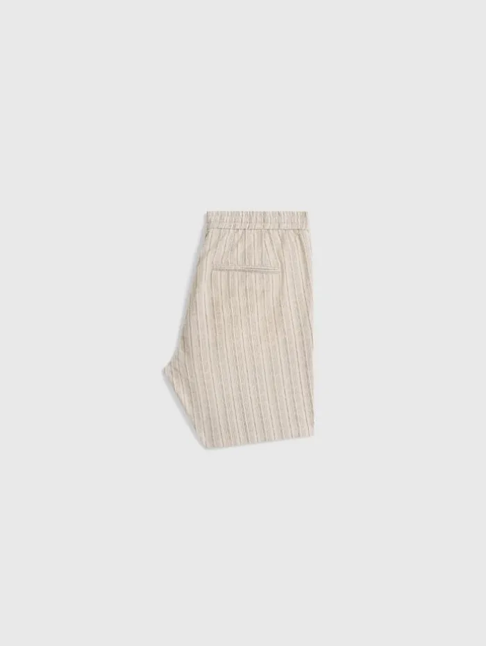 Enhance your casual wardrobe with the style and comfort of our Daryl Shorts. Designed with a focus on relaxed elegance, featuring a convenient drawstring waist for an adjustable fit. Crafted from a unique striped cotton-hemp blend, they offer the softness of cotton with the durability and eco-friendly benefits of hemp. The shorts are equipped with side seam pockets and backside welt pockets, providing practicality without compromising their sleek silhouette. Ideal for laid-back days or leisurely outings, the Daryl Shorts add a touch of sophistication to your everyday attire.90% Cotton, 10% Hemp Machine Wash Cold DrawstringSide Seam PocketsBack Welt PocketsStripe Print FabricMeasurements: Waist: 16.75″, Leg Opening: 11.25″, Inseam: 6.5″