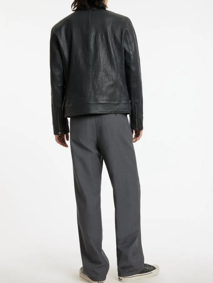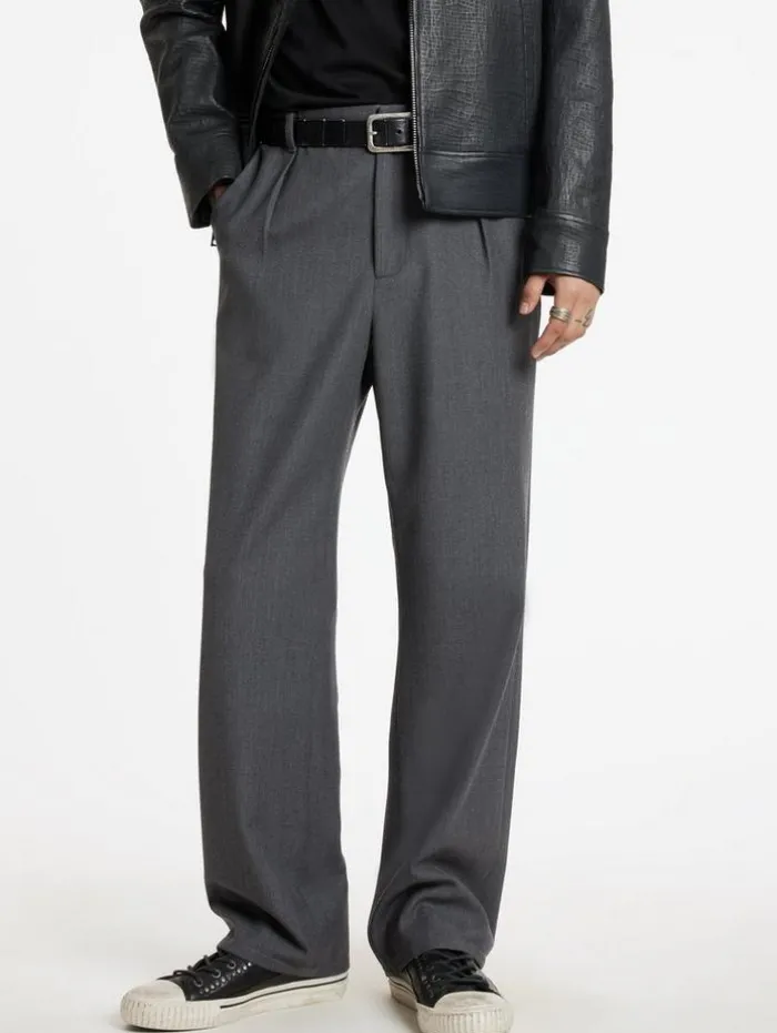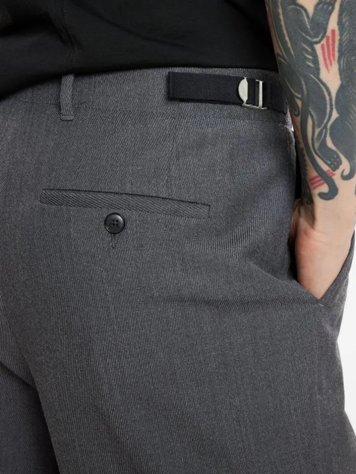 The Ely Pants are a new addition to our collection. Understated, they provide a relaxed yet elegant appeal. With a belted waist for extra shaping where needed, we’re tucking in a band tee to achieve the full look. 53% Recycled Polyester, 43% Wool, 4% Elastane Dry Clean OnlyRelaxed Fit Belted Waistband Button ClosureMeasurements: Waist: 17.125″, Inseam: 31.5″, Leg Opening: 9.625″