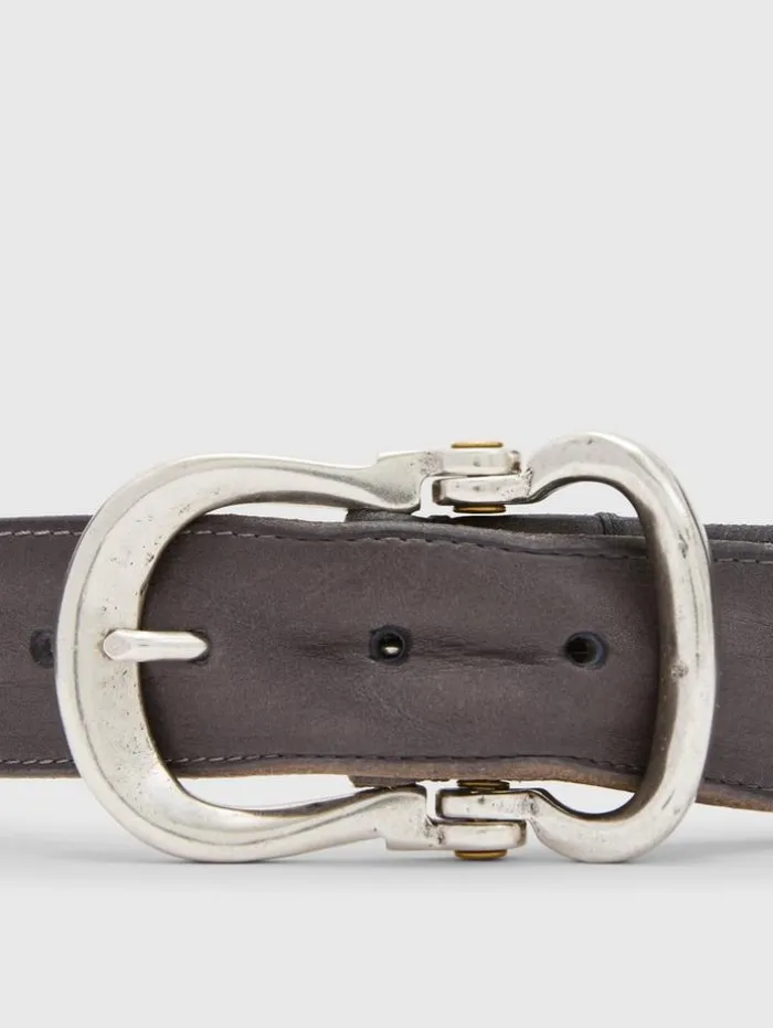 A stand-out JV original design. This style features our signature ‘Guitar Hinge’ buckle with brass pin details. The strap is constructed in a full-grain washed calf leather with edge stitching and leather lined interior. Made in ItalyAn everyday accessory that dares to standout. The Fibel Belt features our new guitar hinge buckle, it’s an original JV design defined by brass pin details. The strap has just as much to showcase, it’s crafted from full grain calf leather. The finer details include edge stitchwork to give it a clean aesthetic that echoes vintage styles. 100% LeatherSlim StrapGuitar Hinge 32mm Nickel BuckleFull Grain Washed LeatherBrass Pin DetailsEdge Stitching Leather Lined InteriorMade In Italy