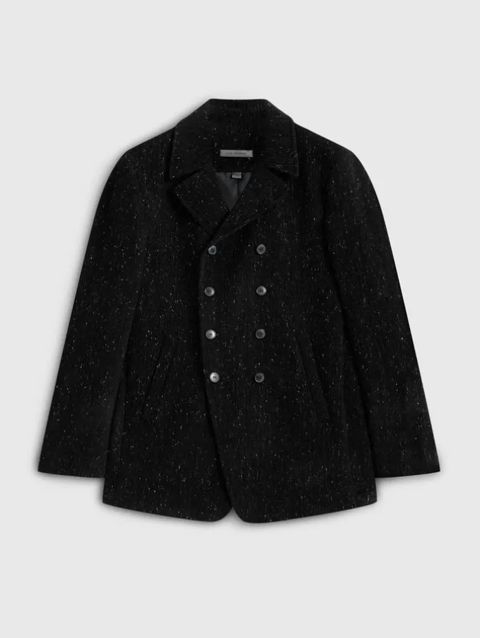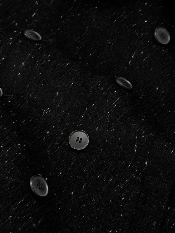The Hart Peacoat embodies Italian finesse. This double-breasted design, distinguished by its cutaway front shape, merges traditional elegance with a contemporary twist. Expertly crafted from premium Italian fabrics, this coat showcases a unique interplay of thin silk stretch and melange yarn. The addition of chenille yarn creates an exclusive mottled effect, lending a touch of artistic distinction to its appearance. 46% Viscose, 40% Wool, 13% Cotton, 1% ElastaneDry Clean OnlyCollarButton ClosureLong SleeveDouble-BreastedMade In ItalyFront Body Length HPS: 82.5cm, Center Back Body Length: 77cm, Across Shoulder: 47cm, Chest: 55cm Flat, Sleeve Length : 26″