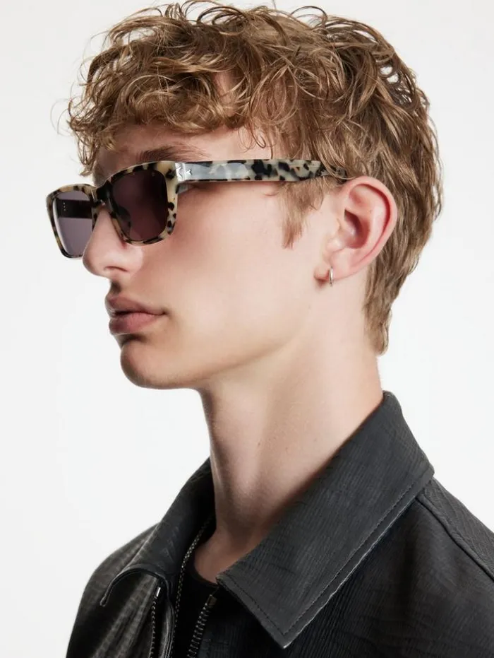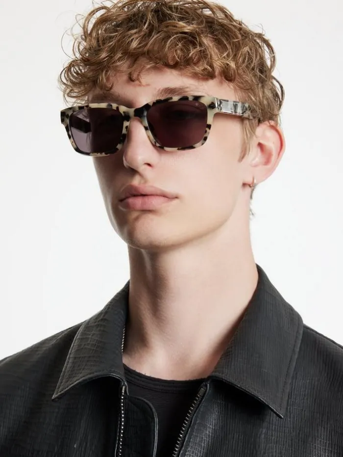 The high-quality acetate on a modern take on a traditional rectangular style is what sets this frame apart, and gives it a rock and roll look. The wide temple arms showcase a double V pattern standing for John Varvatos. The frame comes in three distinct colors, black Havana, cream Havana, and crystal blue. Each frame has a lens in a complementary color and has a special AR blue black coating for additional eye protection.