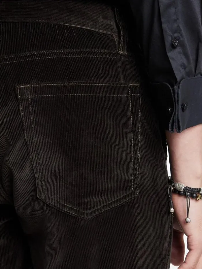 Our Motor City Pants redefine the boundaries of corduroy with a distinctive take. Crafted from micro cord with an AIRO finish, these slim-fit, pleated pants boast a unique wavy texture that diverges from traditional velvet. The fabric’s stretch ensures a casual yet modern fit, while the addition of viscose imparts a subtle shine, lending an element of elegance.98% Cotton, 2% ElastaneDry Clean OnlySlim FitZipper FlyPleated DetailingAIRO FinishMeasurements: Waist: 34.5″, Hip: 41.5″, Inseam: 33″