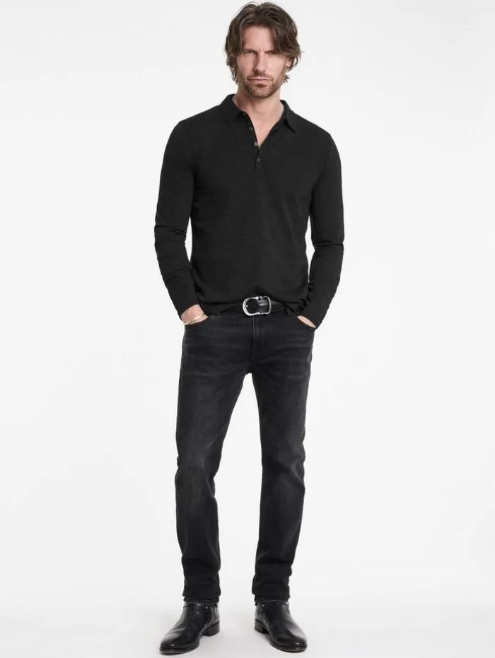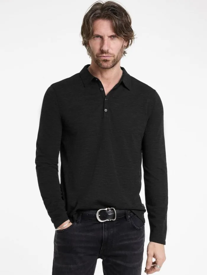 Our Maleo Polo reinvents the timeless silhouette, crafted from piqué fabric renowned for its dry hand feel. Elevated further by plush Japanese velvet tape detailing along the shoulders, this piece boldly updates the classic polo. Offering unmatched comfort and a crisp appearance, it’s designed to be worn solo or layered for an understated yet cutting-edge look.48% Virgin Wool, 49% Polyester, 3% ElastaneMachine Wash ColdCollarRegular FitLong SleeveShoulder Tape DetailJapanese Velvet TrimMeasurements: Body Length: 27.5″, Chest Width (Flat): 20.25″, Sleeve Length: 34.5″