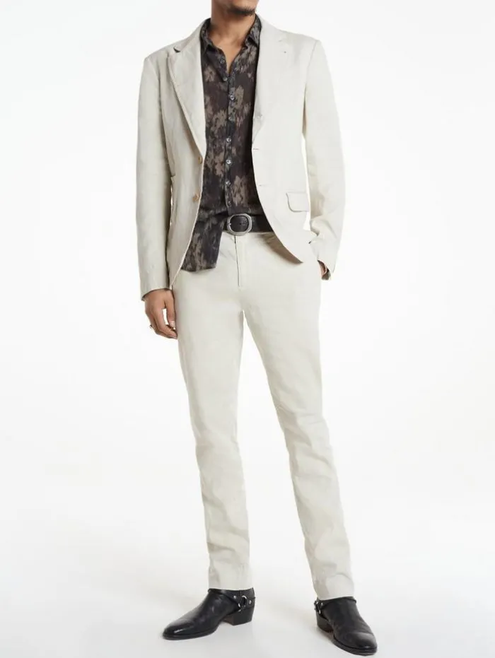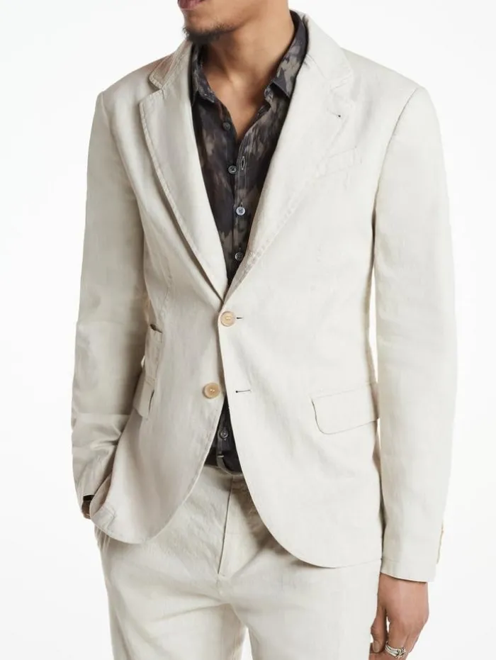 The Rind is as breezy as you could need. It’s crafted from a blend of cotton and linen that’s coated for a slight lustre.66% Linen, 32% Cotton, 2% ElastaneHand Wash ColdSlim FitNotch LapelFlap PocketsButton FrontItalian Cloth