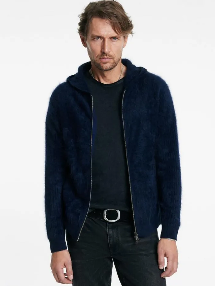 The Catherine returns this season, redefining the classic hoodie with the plush hand feel of brushed cashmere. Featuring a 2×4 ribbed hood and sleeves for rich texture, this piece combines superior craftsmanship with a rebellious approach. The antiqued metal zipper secures its regular fit while enhancing its timeless attitude, making it an iconic addition to any wardrobe.100% CashmereDry Clean OnlyRegular FitZip ClosureLong Sleeve2x4 Ribbed HoodBrushed TextureOrganic CashmereMeasurements: Body Length: 26.75”, Chest Width (Flat): 20.5”, Sleeve Length: 34.5”